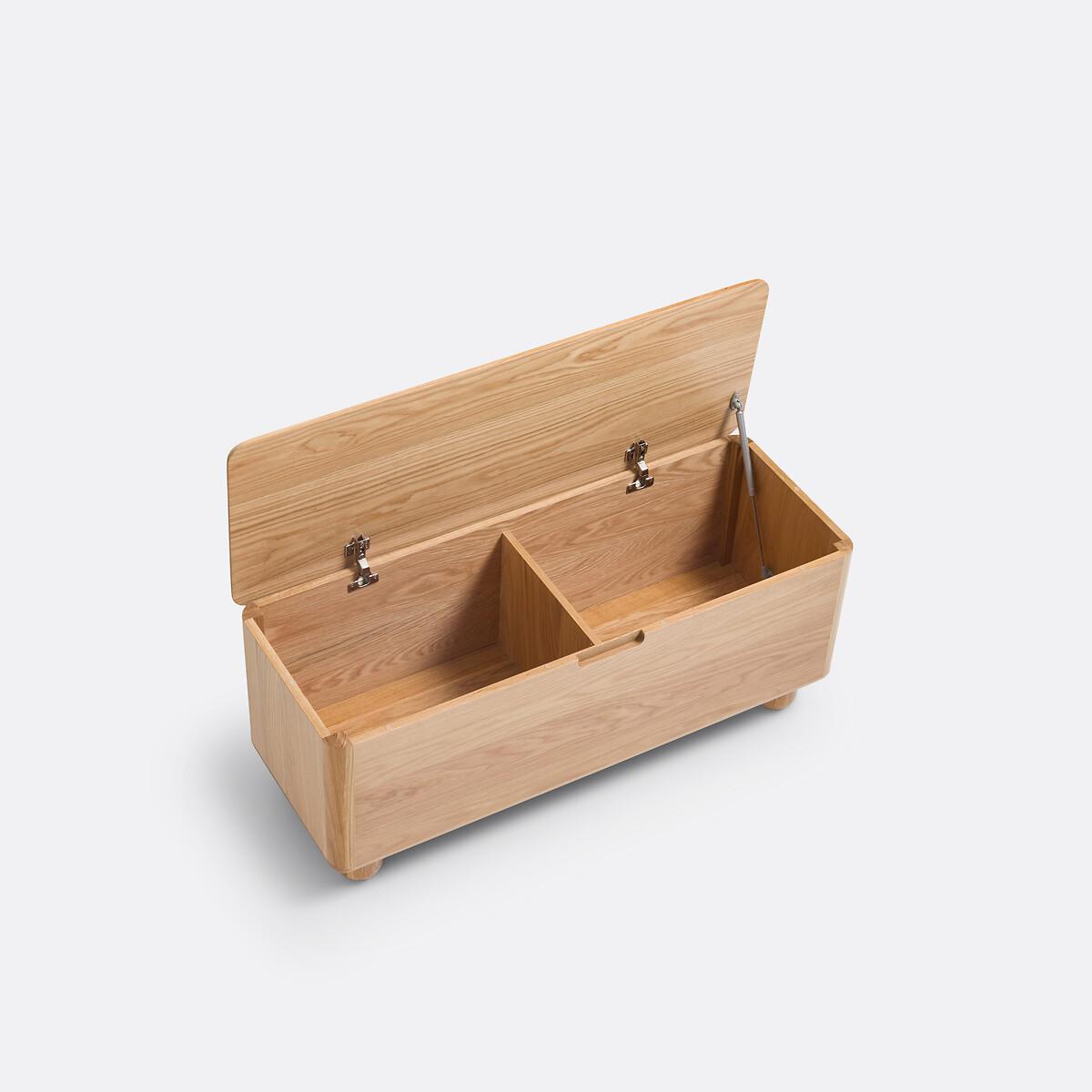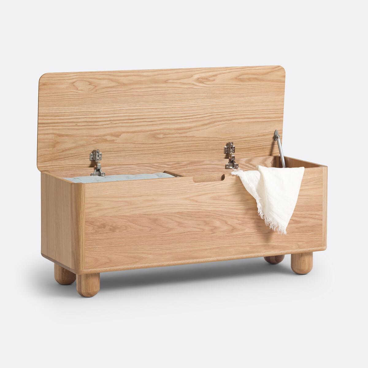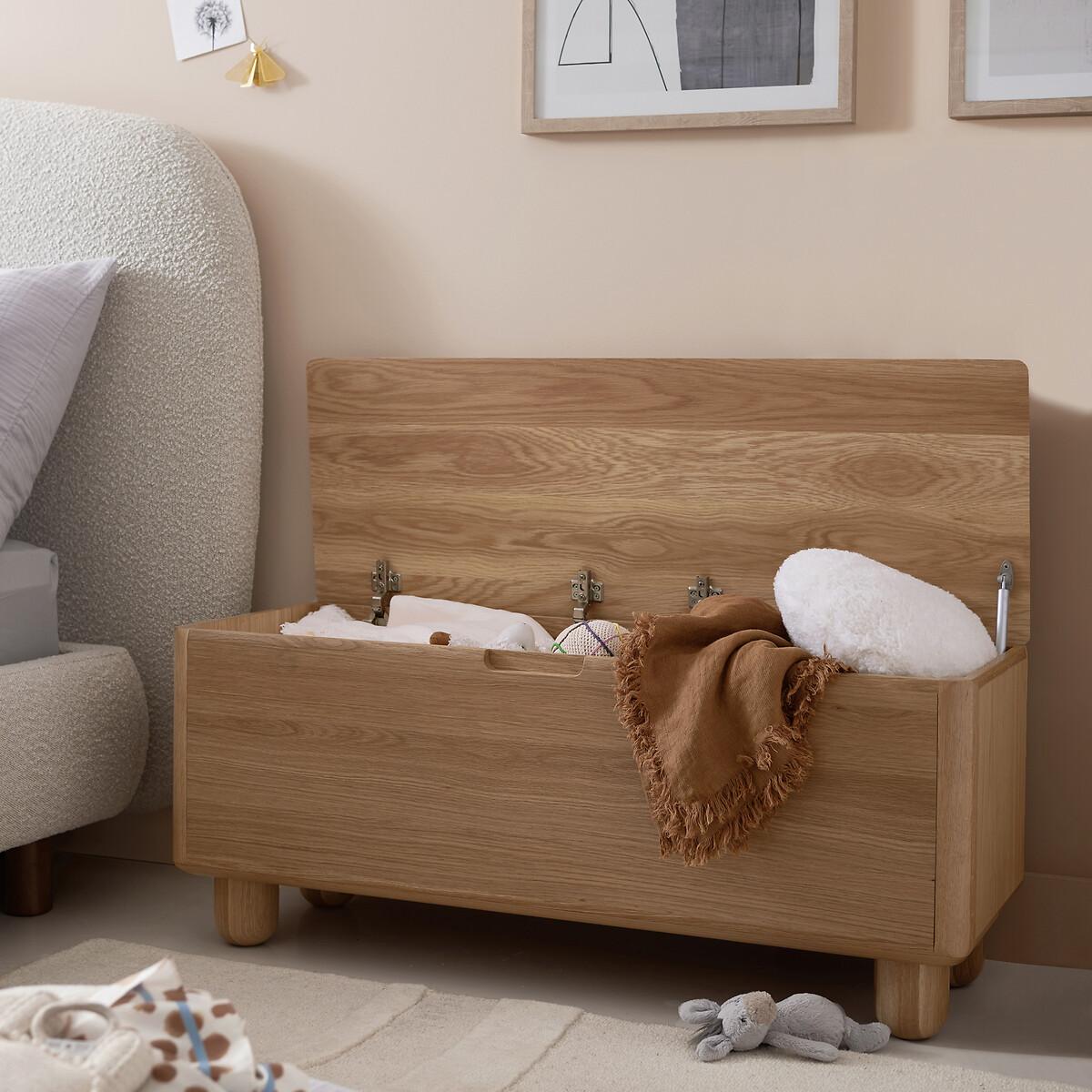 A Scandinavian style with generous dimensions. Introducing Piero, a dual-function solid oak storage unit: bench and storage box. Ideal in an entrance or at the end of the bed. Designed by La Redoute Interiors. Product Details • Storage box with 2 compartments • Top opening • Solid oak box. FSC® certified wood • Sides and central partition in oak veneered MDF, nitrocellulose varnish • Soft closing Dimensions Overall • Width: 110cm • Height: 46cm • Depth: 40cm • Height of legs: 10cm • Weight: 30kg. Usable dimensions • Compartments : L52.3 x H29 x D36.4cmDelivery:. Sold pre-assembled. Available for home delivery. Note! Please check that all access points are large enough to accommodate your delivery (doors, stairs, lifts). • WOOD FROM SUSTAINABLY MANAGED FORESTS. FSC® certified wood comes from forests that are environmentally, socially and economically well managed. Parcel dimensions and weight1 parcel • L118 x H53 x D48cm. 35kg
