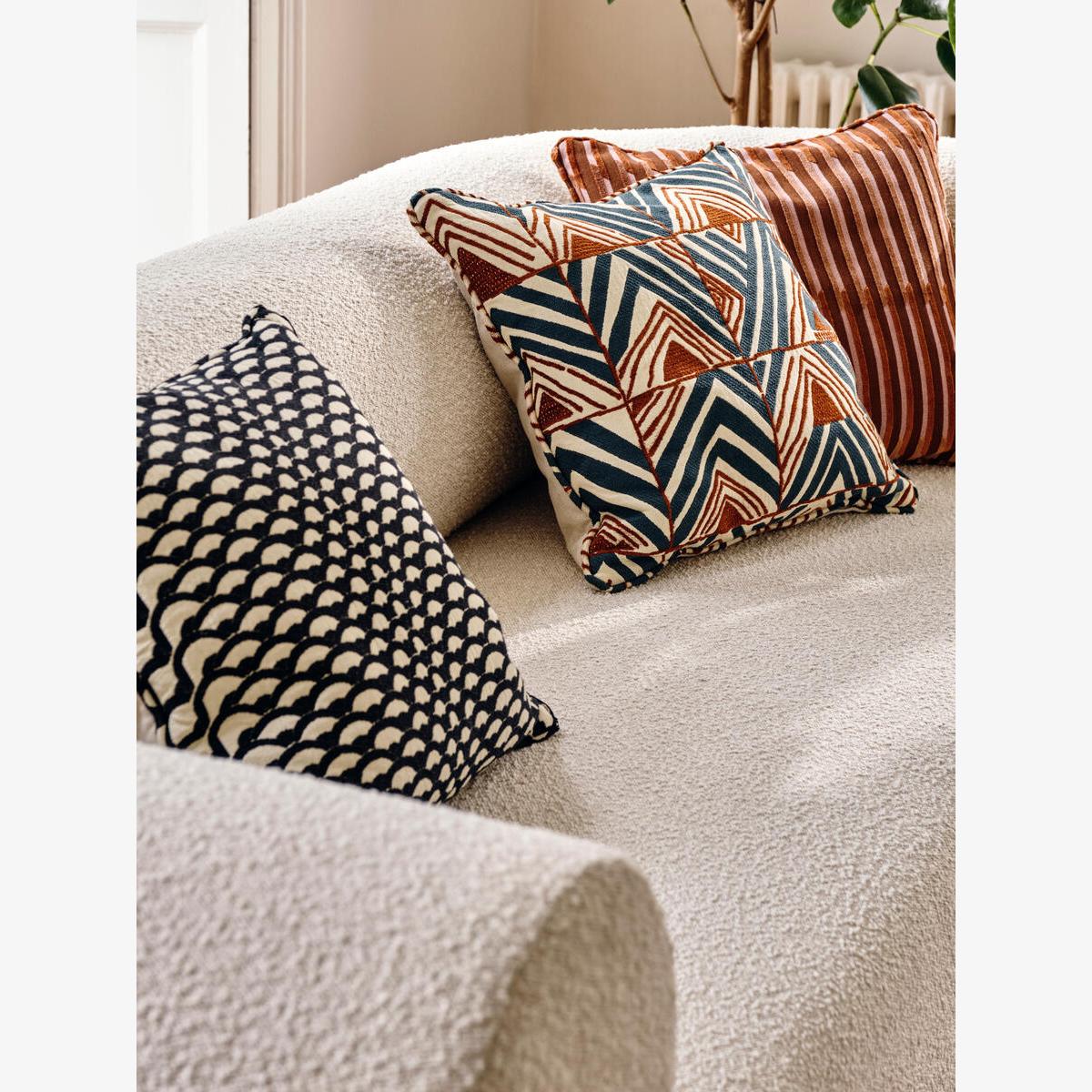 Working with the Tchad fabric created by French furnishing and fabrics house, Pierre Frey, this cotton-blend cushion is woven with a vintage-inspired geometric pattern that reflects the brand's affinity for classical and contemporary art. You'll find similar styles in our Houses around the world. • Pierre Frey Tchad fabric cushion • Cotton blend • Abstract design • Self-piping • Found in our Houses around the world