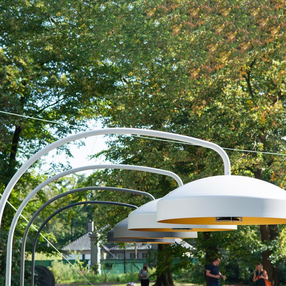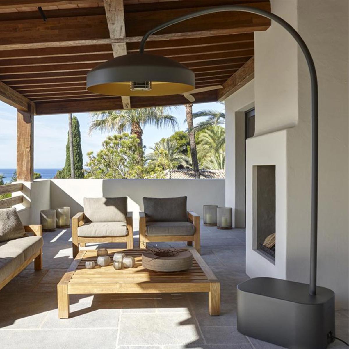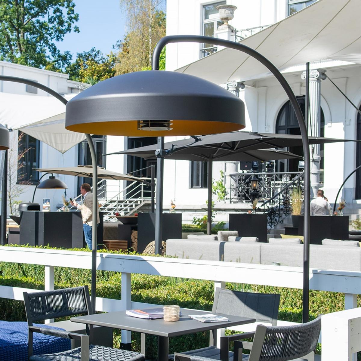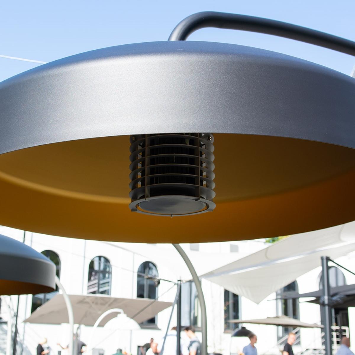 This unique designer infrared electrical outdoor heater increases the comfort of outdoor living and extends the outdoor season. Stretch out the warmth of Summer with the Disc outdoor heater and lamp. Thanks to the rustproof materials and weatherproof design the Disc can be used throughout all seasons. The technical core of the signature Heatsail dome combined with the distinctive Piet Boon design offers an integrated heating system that blends harmoniously into your surroundings giving you lighting and heating for your garden or terrace. With a handy remote control, both light and heat settings can be adjusted easily, allowing you to stay comfortably seated with a drink in hand. Using less energy than typical outdoor heaters and with zero emissions, you can enjoy your outdoor space for longer without feeling guilty. Please note that the Disc should be installed by a qualified electrician. Features and Benefits:.
