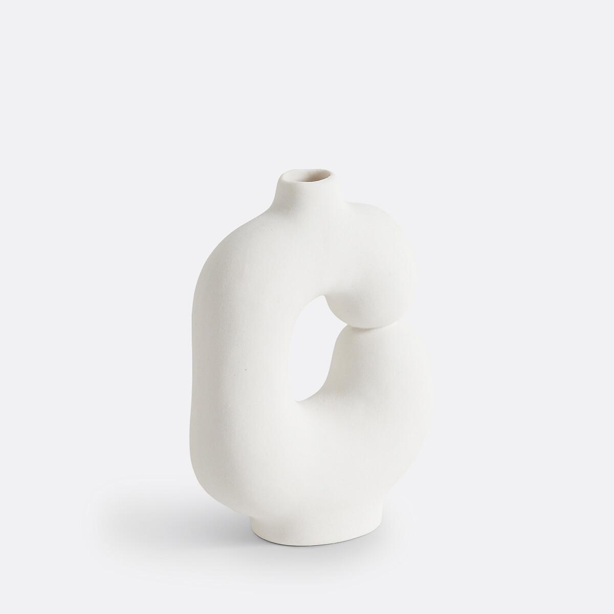 I love this petite ceramic vase for its sculptural form and understated elegance. Its quirky, contemporary shape adds visual interest and works particularly well in modern or minimalist interiors, where its unique silhouette can serve as a focal point on a side table or shelf. It’s versatile enough to blend seamlessly with both neutral and colourfully layered decor. For styling, consider pairing it with a simple single-stem flower or a small cluster of dried botanicals to highlight its shape without overwhelming. Due to its height, it’s ideal for displaying on mantels, console tables, or as a standalone piece in a vignette - a great way to introduce a subtle artistic element to your space.