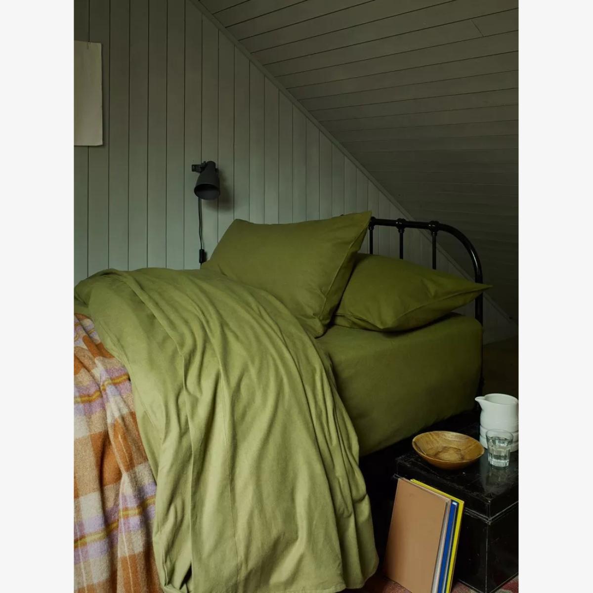 Make your bedroom the cosiest space in the house with this brushed cotton duvet cover. Woven from a blend of sustainably sourced cotton and TENCEL™ fibres, the buttery soft fabric is warm yet breathable, keeping you comfortable on cooler nights. Duvet covers feature corozo button fastenings and handy inside corner ties to stop your duvet from slipping. Bedding sizes To fit duvet/pillow size (cm) Standard pillowcase, L75 x W50cm Square pillowcase, L65 x W65cm Super king pillowcase, L90 x W50cm Single duvet cover, L200 x W140cm Double duvet cover, L200 x W200cm King duvet cover, L220 x W225cm Super king duvet cover, L220 x W260cm