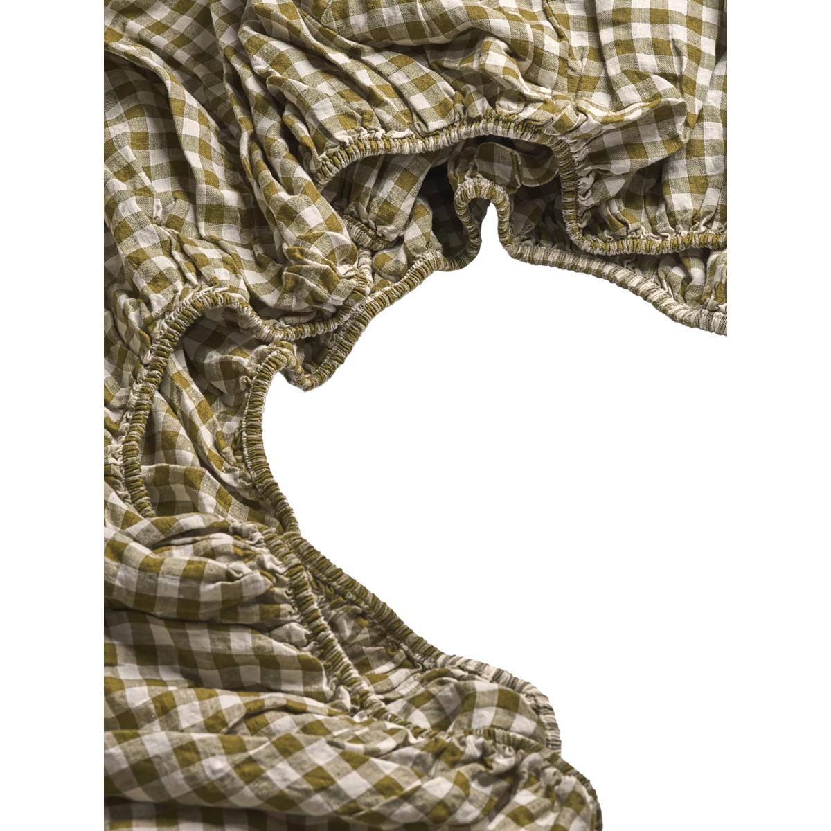 This gingham linen blend fitted sheet is the ultimate choice for modern cottagecore style. Made from only the highest-quality fibres, the breathable fabric combines the effortless look of linen with the softness of cotton. This fitted sheet has elasticated edges all the way around and fit mattresses up to 40cm deep. Sheeting sizes To fit mattress size (cm) Single, L190 x W90cm Double, L190 x W135cm King, L200 x W150cm Super king, L200 x W180cm Piglet in Bed believe in a natural, sustainable and enjoyable way of life that encourages reflection on what matters most. Born in, and inspired by the joys of rural Britain, Piglet in Bed makes products with longevity in mind. The Brand are founded on the conviction that genuine quality should be with us forever and they look to nature as a wonderful provider; materials that are cosy and soft, but durable too. Creases are not the enemy. Wasting your one precious life on things like plucking, plumping and fluffing is. Life is for LIVING. And so are Piglet in Bed's products.