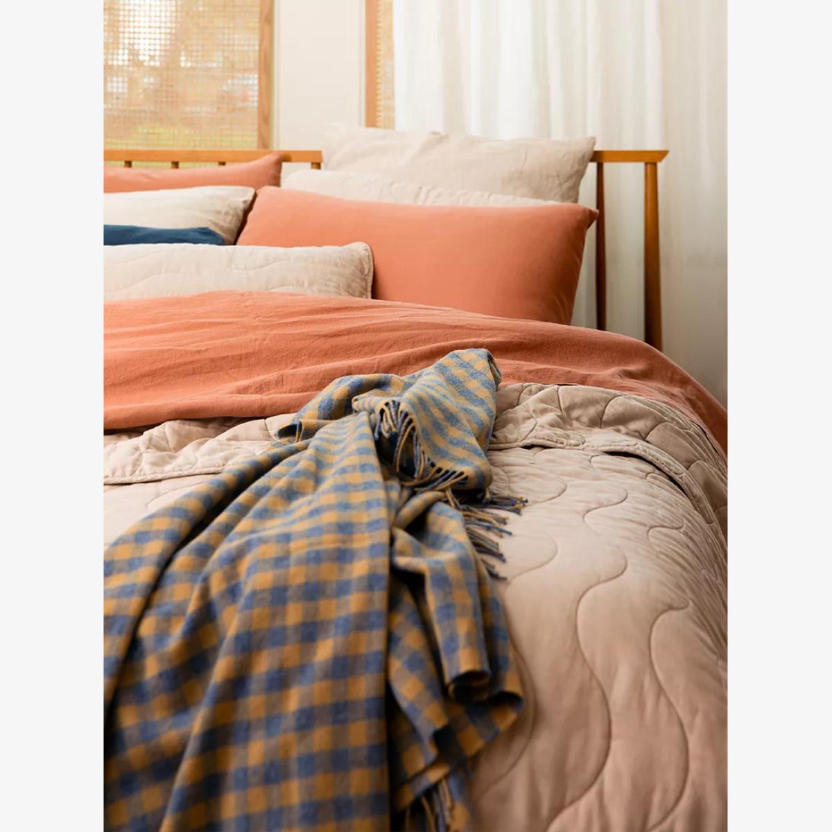 Medium in weight, these washed cotton wave quilts add an additional layer of cosiness and texture - perfect for chillier nights, but beautifully decorative all year round. Team with other pastel-like tones, or contrast with deeper shades to add a pop of colour to your bedtime look. Made in Portugal and sourced in partnership with the Better Cotton Initiative, Piglet in Bed 100% cotton quilts are plush and soft so you can rest easy.