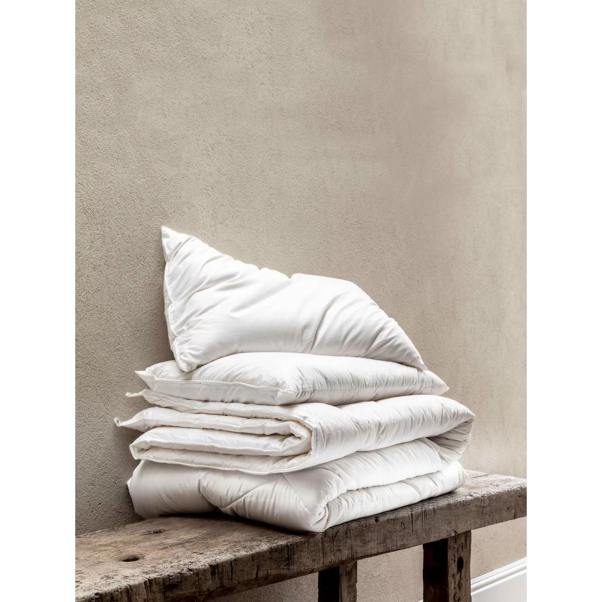 Filled with 600g of Merino wool, this is the softest pillow available in Piglet in Bed's Merino wool range and it's encased in an organic cotton cover. Creating a feeling of sleeping on a cloud, together these materials are naturally breathable and temperature regulating as they help to wick away moisture so you have a more restful night's sleep. How to care for this pillow This pillow is machine washable, but it's advised that you should only do this when it's absolutely necessary. The best way to keep it clean, fresh, bacteria and toxin-free and to ensure it lasts, it to air it on a washing line in the sunshine at least four times a year, ideally at the start of each season. The warmth of the sun will wick away any moisture trapped within the wool and help to sterilise both the wool and cotton. Regularly airing this product will also encourage the fibres of the wool to naturally expand back out, so your pillow will feel revitalised and bounce back to life.