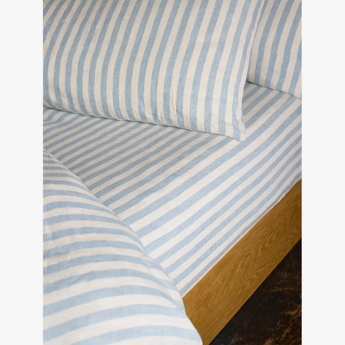 Piglet in Bed Pembroke Stripe Linen Blend Fitted Sheet, Coastal Blue