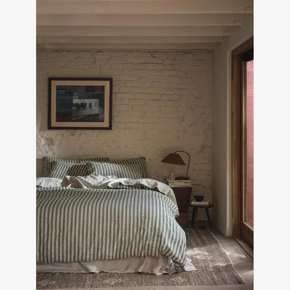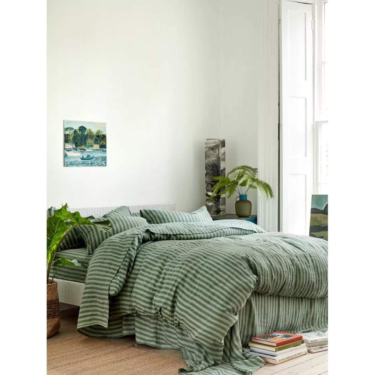 Nestle into nostalgia with this bold deck-chair-inspired Pembroke Stripe linen blend flat sheet. Made from only the highest-quality fibres, the breathable fabric combines the effortless look of linen with the softness of cotton. Layer in the colder months or use as a lightweight cover on warmer summer nights. Sheeting sizes To fit mattress size (cm) Sheeting / mattress sizes Single, L275 x W180cm to fit L190 x W90cm Double, L275 x W230 to fit L190 x W135cm King, L275 x W275cm to fit L200 x W150cm Super king, L275 x W305 to fit L200 x W180cm