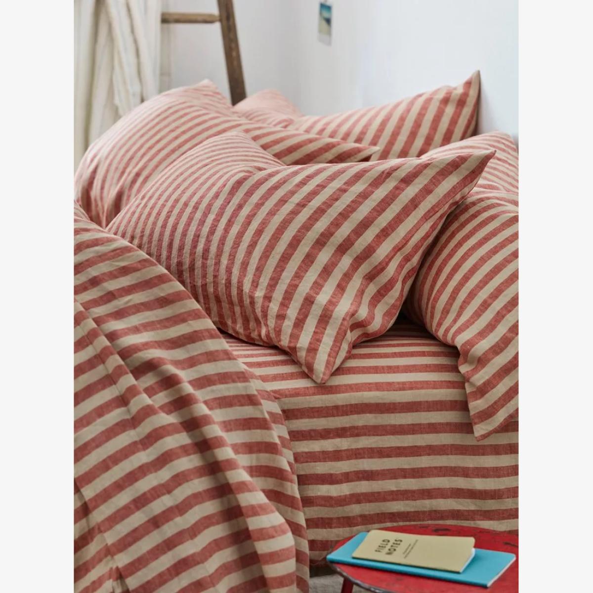 I love the Piglet in Bed Pembroke Stripe Linen sheet for its classic yet relaxed appeal, making it a versatile choice for both contemporary and traditional interiors. Its soft, muted stripe pattern works particularly well in neutral or pastel colour schemes, adding a subtle touch of interest without overwhelming the space. For styling tips, pair it with matching or complementary linen bed linens for a layered, tactile look, and consider incorporating textured throws or cushions to enhance the cosy, inviting vibe. This sheet is great for creating a laid-back, effortlessly stylish bedroom, especially in settings where comfort and understated elegance are key.