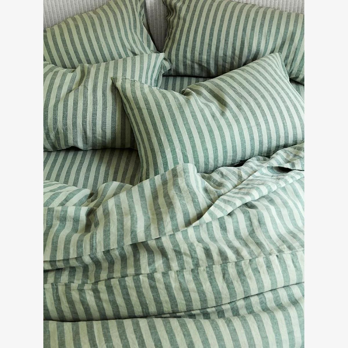 Introducing the Pembroke Stripe linen collection. Made in Portugal from high-quality European linen, this breathable, long-lasting, and thermoregulating, linen is a bedding material for all seasons; keeping you warm when it's cold and keeping you cool when it's hot. Beautifully simple and unfailingly pleasant, choose this ticking stripe linen bedding for timeless appeal. Piglet in Bed bedding gets softer and softer with wear and can be mixed and matched with any of their linen sheets or pillowcases, adding natural texture and depth to any bedroom scheme, whether it’s for your master, guest or kids' bedroom. Sheeting / mattress sizes Single, L275 x W180cm to fit L190 x W90cm Double, L275 x W230 to fit L190 x W135cm King, L275 x W275cm to fit L200 x W150cm Super king, L275 x W305 to fit L200 x W180cm Piglet in Bed believes in a natural, sustainable and enjoyable way of life that encourages reflection on what matters most. Born in, and inspired by the joys of rural Britain, Piglet in Bed makes products with longevity in mind. The brand is founded on the conviction that genuine quality should be with us forever and they look to nature as a wonderful provider; materials that are cosy and soft, but durable too. Creases are not the enemy. Wasting your one precious life on things like plucking, plumping and fluffing is. Life is for LIVING. And so are Piglet in Bed's products.