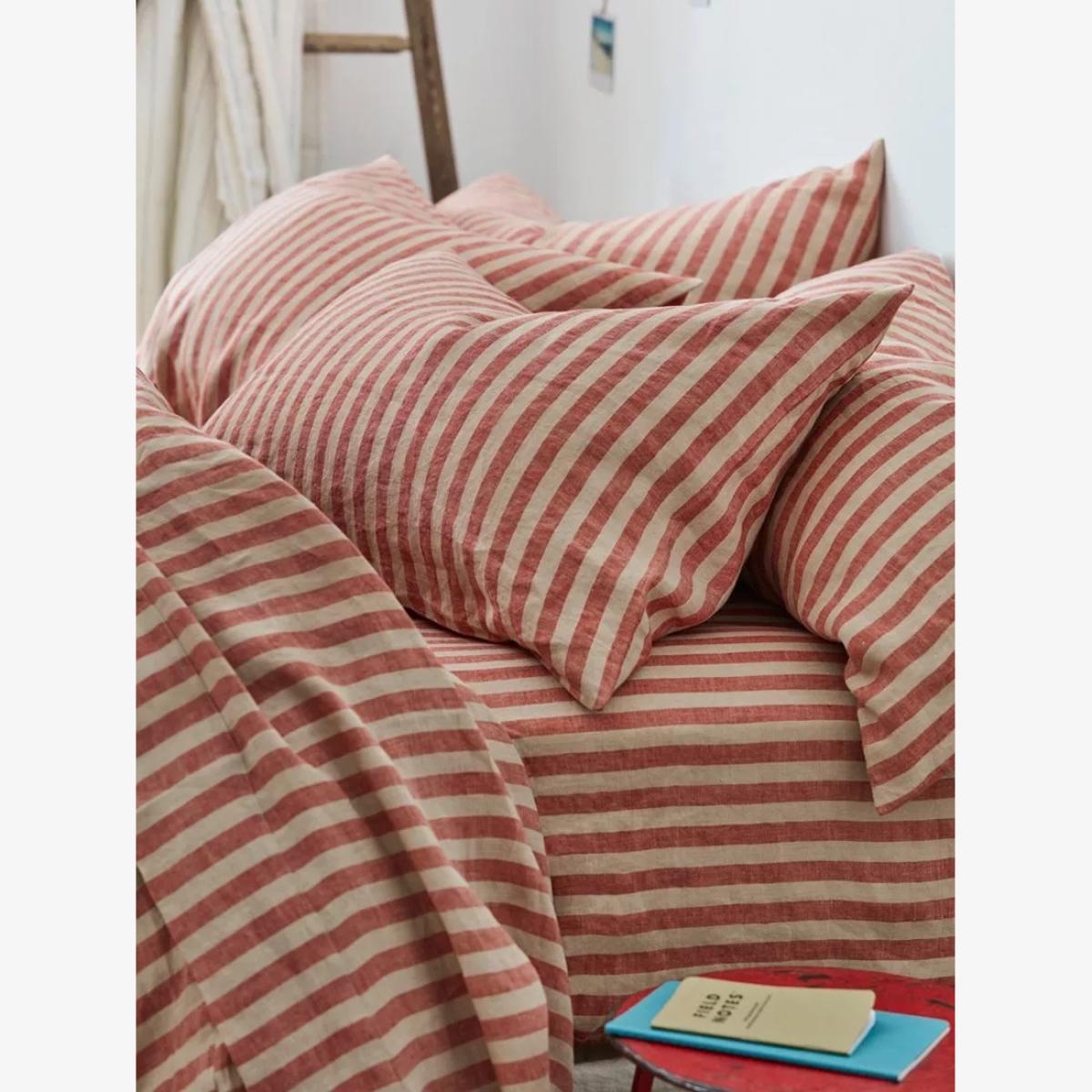 I love this stripe linen sheet for its relaxed yet classic feel, making it a versatile choice for both traditional and contemporary interiors. The Pembroke Stripe design adds a touch of understated charm, especially in neutral or soft colour schemes. It’s perfect for layered bedding looks - pair with crisp white or pastel-toned duvets for a fresh, inviting bed. Practical styling tips include mixing with textured or patterned cushions for added interest, or using it as a base layer in a coordinated linen set for a laid-back, effortlessly stylish bedroom. Its linen fabric also offers excellent breathability, making it suitable for year-round comfort.