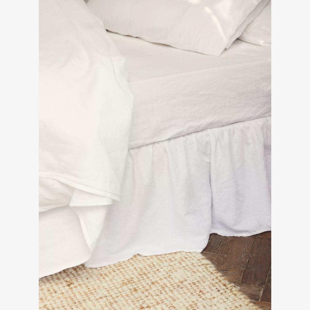 Add a simple, yet elegant touch to your bedroom with this white linen valance. A classic choice for lovers of high-quality, natural basics, this gathered skirt drapes beautifully with its soft frills. Valance sizes To fit bed base size (cm) Single, L190 x W90cm Double, L190 x W135cm King, L200 x W150cm Super king, L200 x W180cm Drop 38cm