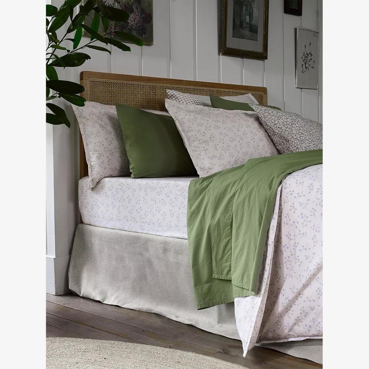 Spring Sprig cotton sheeting features a whimsical floral design that's sourced from the Design Library archives and reworked for a modern setting. Introduce the English country cottage aesthetic by mixing and matching your Spring Sprig cotton sheeting with Parchment, Buttermilk or Pear washed cotton. Sheeting sizes To fit mattress size (cm) Single, L190 x W90cm Double, L190 x W135cm King, L200 x W150cm Super king, L200 x W180cm Piglet in Bed believe in a natural, sustainable and enjoyable way of life that encourages reflection on what matters most. Born in, and inspired by the joys of rural Britain, Piglet in Bed makes products with longevity in mind. The Brand are founded on the conviction that genuine quality should be with us forever and they look to nature as a wonderful provider; materials that are cosy and soft, but durable too. Piglet in Bed supports the Better Cotton Initiative.