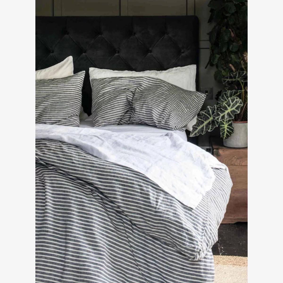 Made for lovers of high quality, natural basics, this linen bedding is made from super soft 100% stonewashed linen. Linen keeps you cosy and warm in the winter and cool in the summer. Piget in Bed bedding gets softer and softer with wear and can be mixed and matched with any of their linen sheets or pillowcases, adding natural texture and depth to any bedroom scheme, whether it’s for your master, guest or kids' bedroom. Additional details: Duvet covers are sold singly, pillowcases are sold in pairs Wooden button fastening on the duvet cover Pre-washed for softness and to ensure it doesn’t shrink, lose its shape or fade Bedding sizes To fit duvet/pillow size (cm) Standard pillowcase, L75 x W50cm Super king pillowcase, L90 x W50cm Square pillowcase, L65 x W65cm Single duvet cover, L200 x W140cm Double duvet cover, L200 x W200cm King duvet cover, L220 x W225cm Super king duvet cover, L220 x W260cm Piglet in Bed believe in a natural, sustainable and enjoyable way of life that encourages reflection on what matters most. Born in, and inspired by the joys of rural Britain, Piglet in Bed makes products with longevity in mind. The Brand are founded on the conviction that genuine quality should be with us forever and they look to nature as a wonderful provider; materials that are cosy and soft, but durable too. Creases are not the enemy. Wasting your one precious life on things like plucking, plumping and fluffing is. Life is for LIVING. And so are Piglet in Bed's products.