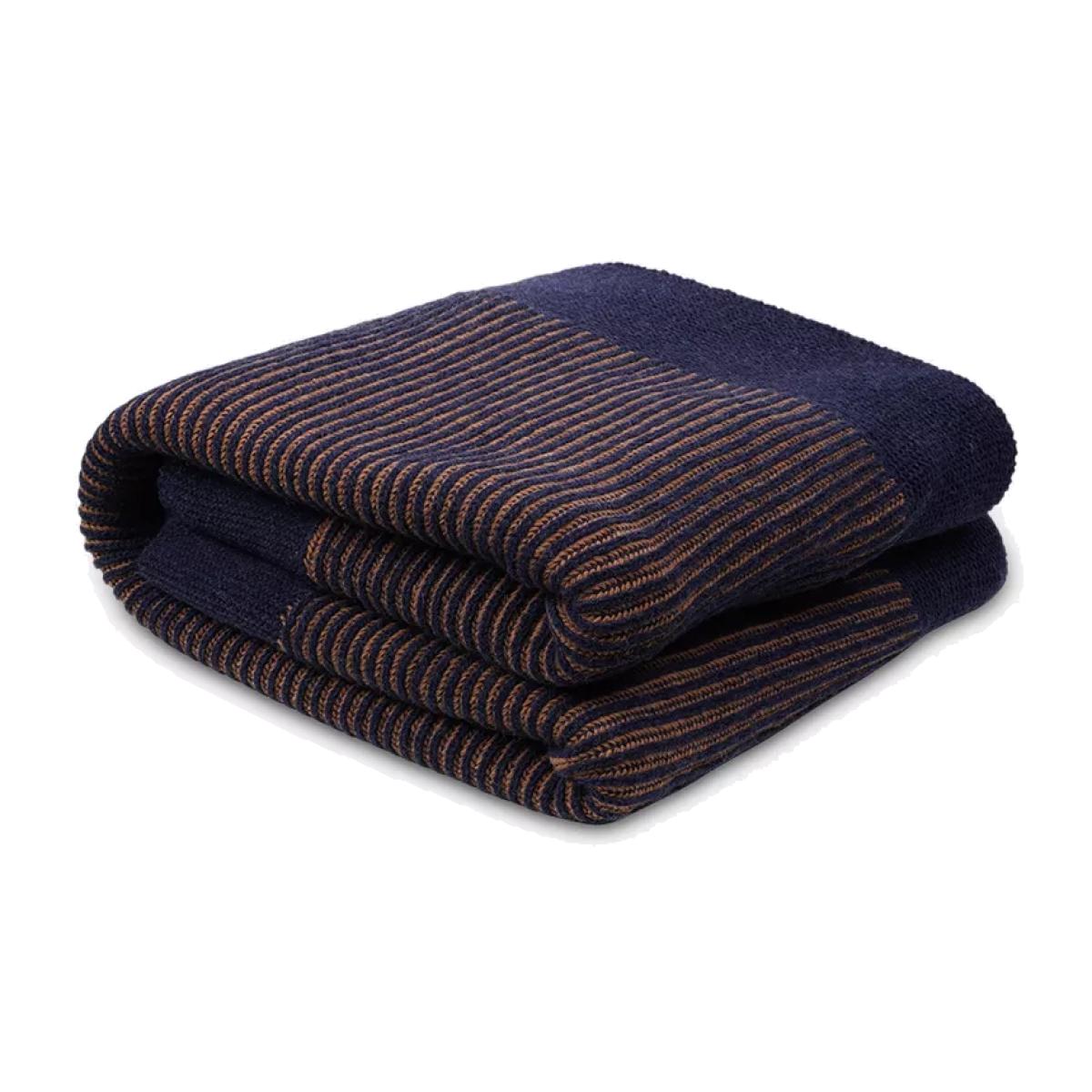 This blanket is a versatile piece that adds both texture and warmth to a variety of interiors. I love how the stripped wool blend knit offers a classic yet slightly relaxed aesthetic, making it well-suited for cosy living rooms or bedroom throws where a touch of comfort is key. It works particularly well in neutral or navy colour schemes, providing a subtle pattern that enhances layered textiles without overwhelming them. For styling, drape it over the edge of a sofa or bed to create a curated, lived-in look, or fold neatly for an approachable, tailored appearance. It’s practical too - easy to grab for chilly evenings or lounging, adding warmth without fuss.