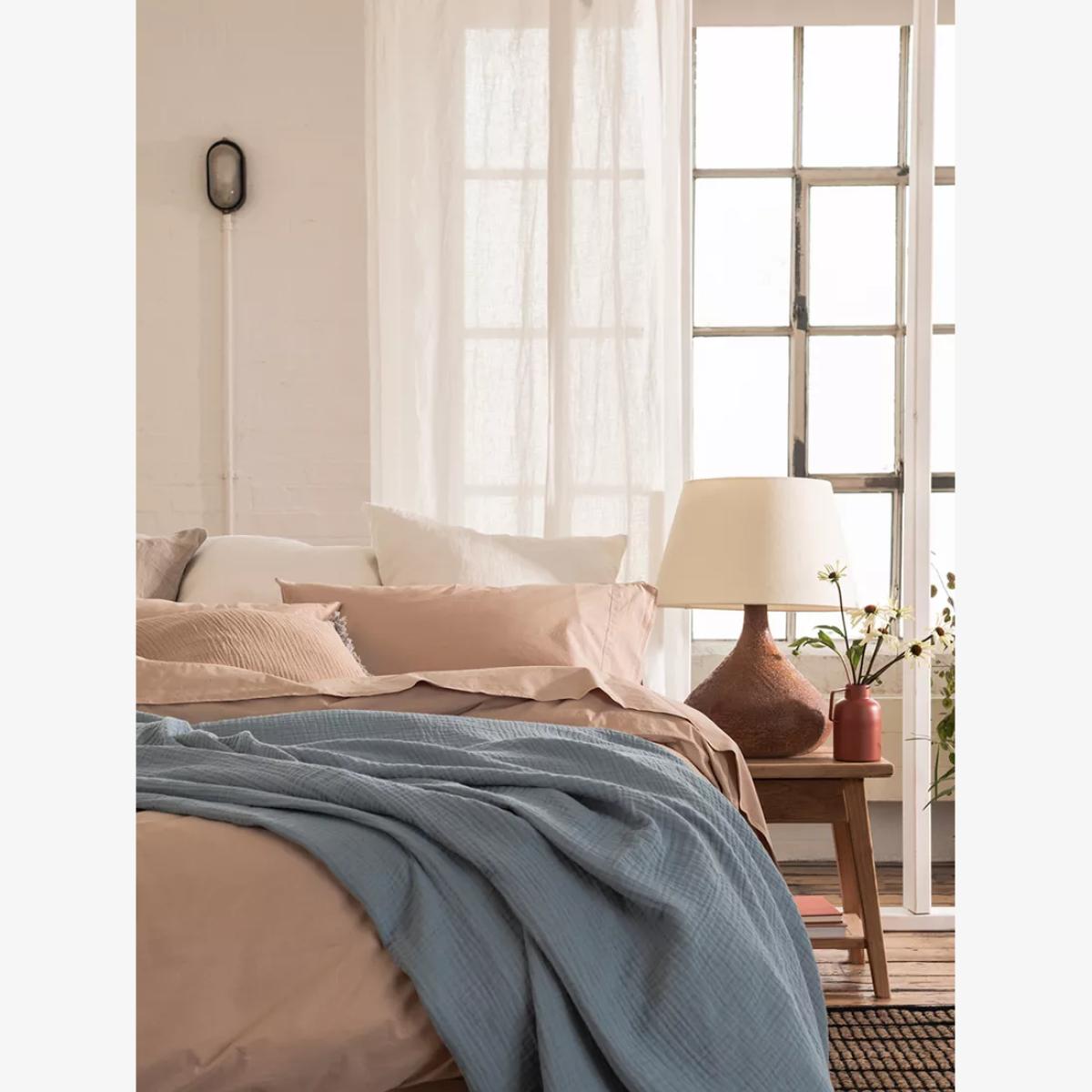 Made from 100% cotton sustainably sourced in partnership with the Better Cotton Initiative, this throw is wonderfully soft and lightweight, with a gently crinkled effect. Warm and versatile, it is made for throwing over your bed as an extra layer or keeping by the sofa for evenings at home. With a soft fringe embellishment, it features two different colours, so you can turn it over for a whole new look.