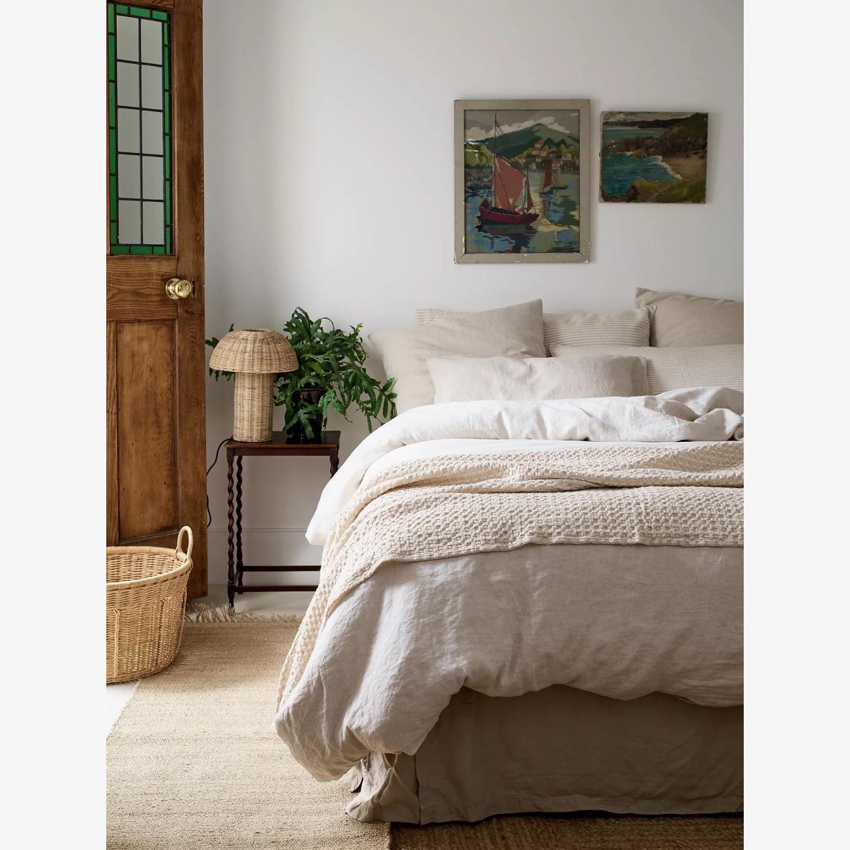 I love this piglet in bed throw for adding texture and warmth to a range of interiors, from cosy country cottages to relaxed contemporary bedrooms. Its neutral oat milk hue makes it incredibly versatile, pairing well with both soft linens and rustic woods. Practical styling tips include draping it casually over the end of the bed or folding it neatly over a throw chair for a layered look. It works especially well in layered bedding schemes, offering an inviting touch in colder months or adding subtle interest in a neutral colour palette. Plus, its size is perfect for wrapping around yourself for that extra comfort when lounging in bed or on the sofa.