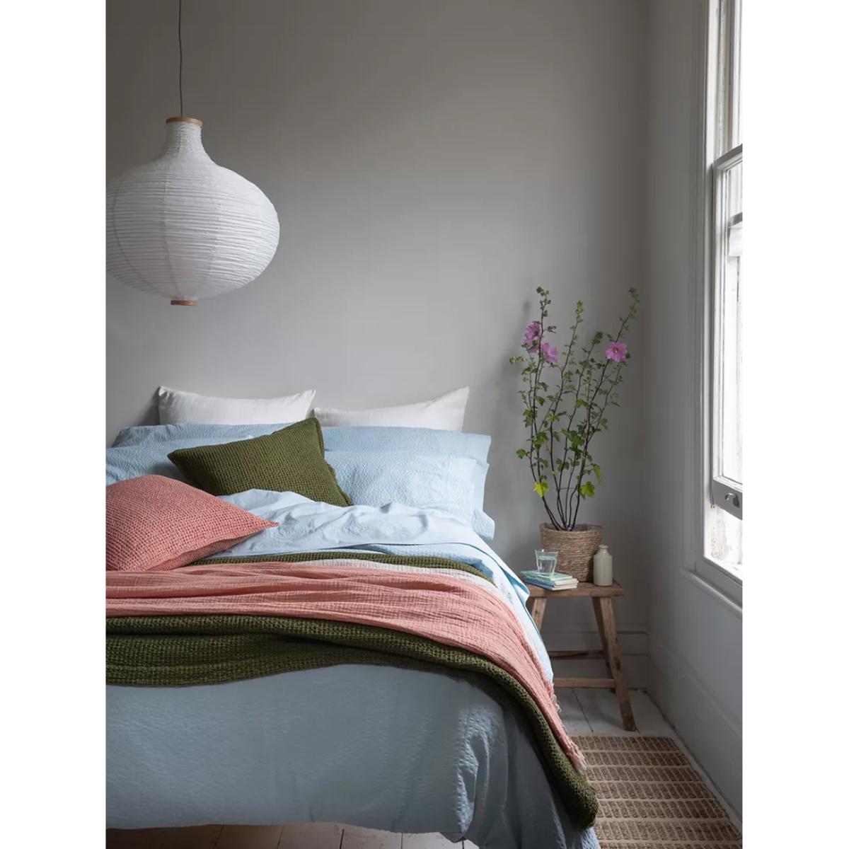 I really like the Piglet in Bed waffle throw for its textured, cosy feel and rich colour, making it a versatile addition to many interiors. It works particularly well in contemporary or rustic schemes, adding warmth and tactile interest to sofas or beds. Practical styling tips include draping it over the back of a sofa for easy access or folding it neatly at the end of the bed for a layered look. Its cotton waffle design also lends itself well to casual, laid-back spaces, where comfort is key. Overall, a great piece to inject colour and texture without overwhelming the space.