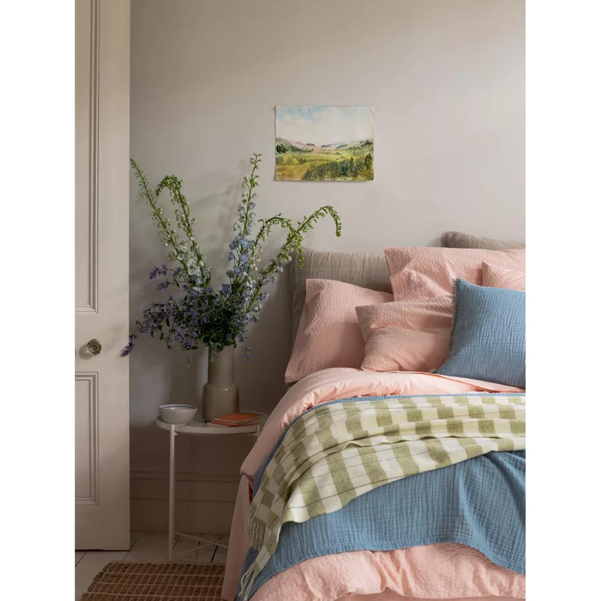 I love this Piiglet blanket for its classic stripe check design, which adds a timeless yet cosy touch to any space. It works particularly well in scandi-inspired interiors or rustic settings thanks to its understated pattern and soft wool feel. For styling tips, drape it casually over a sofa or armchair to create an inviting look, or fold it neatly at the foot of the bed for a fuss-free aesthetic. The neutral tones allow it to blend seamlessly with a range of colour schemes, making it versatile and practical for everyday use. Its thickness also makes it perfect for layering during cooler months or adding a bit of texture to minimalist settings.