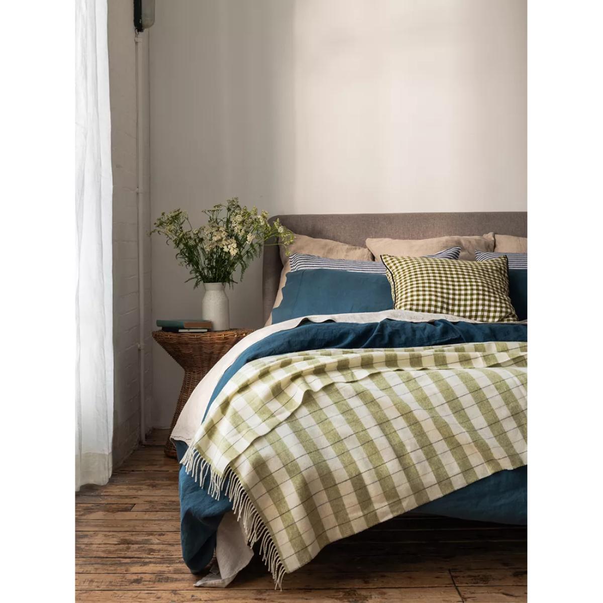 Add an extra cosy layer to your bed with this checked stripe wool blanket. A dominant stripe is crossed with detailed stitching, lending this blanket a heritage appeal. Made in Yorkshire from super soft merino wool, using traditional methods, this woollen blanket is designed to go beautifully with the colours in the Piglet in Bed cotton and linen bedding collections. Layer up and snuggle down.