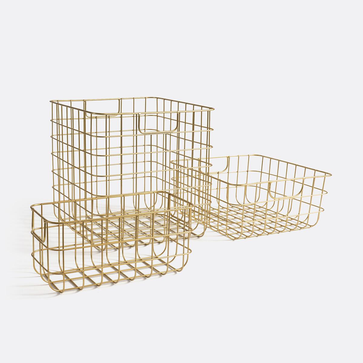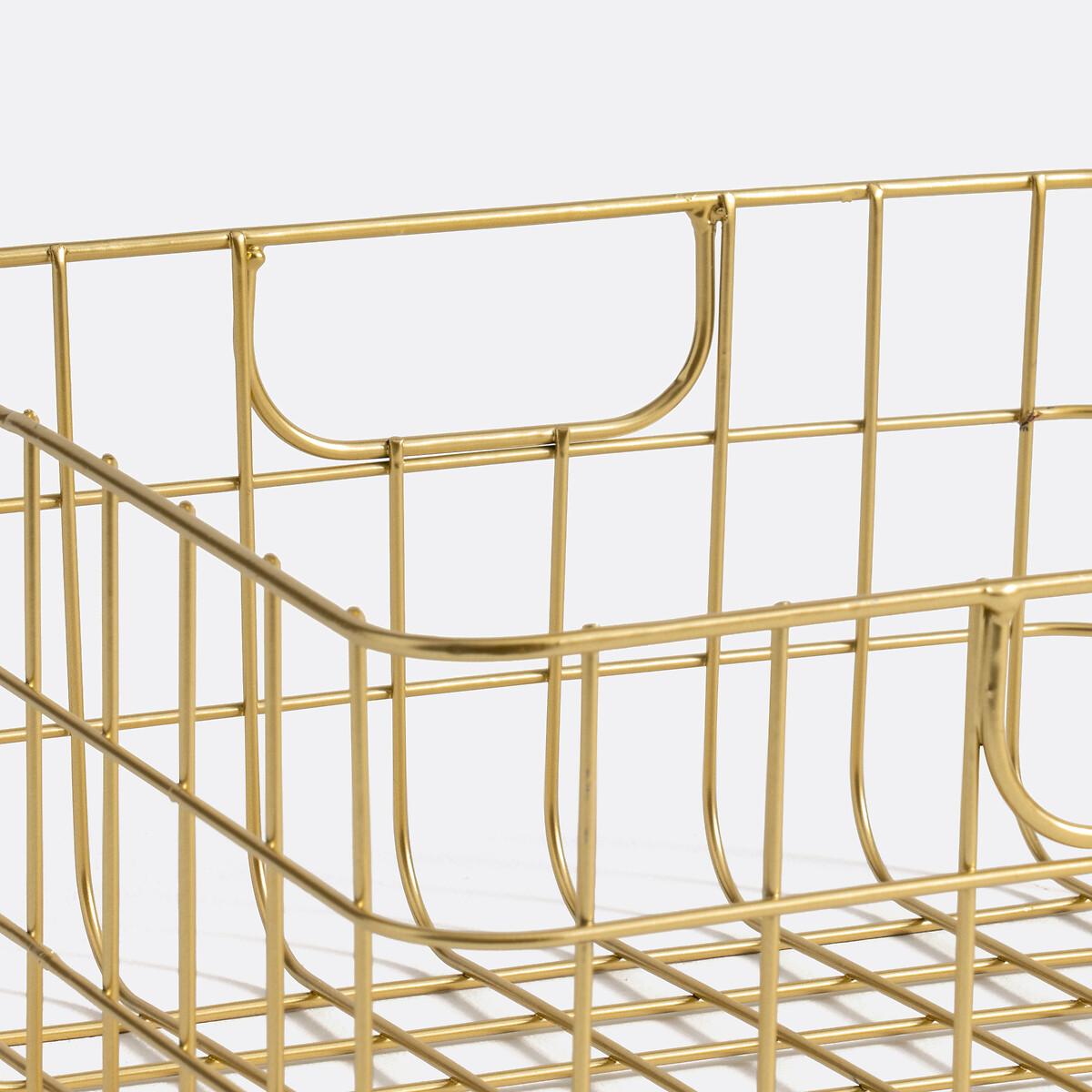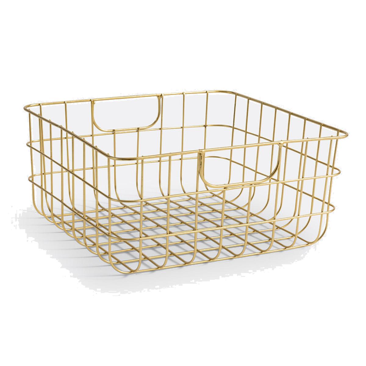 Storage with character. A metal wire frame with a golden finish. The Pikoa basket is easy to move from one room to another thanks to its handles. A stylish design. Product Details • Wired steel metal with gold finish • Carry handles. Dimensions • Width: 31cm • Height: 14cm • Depth: 31cm