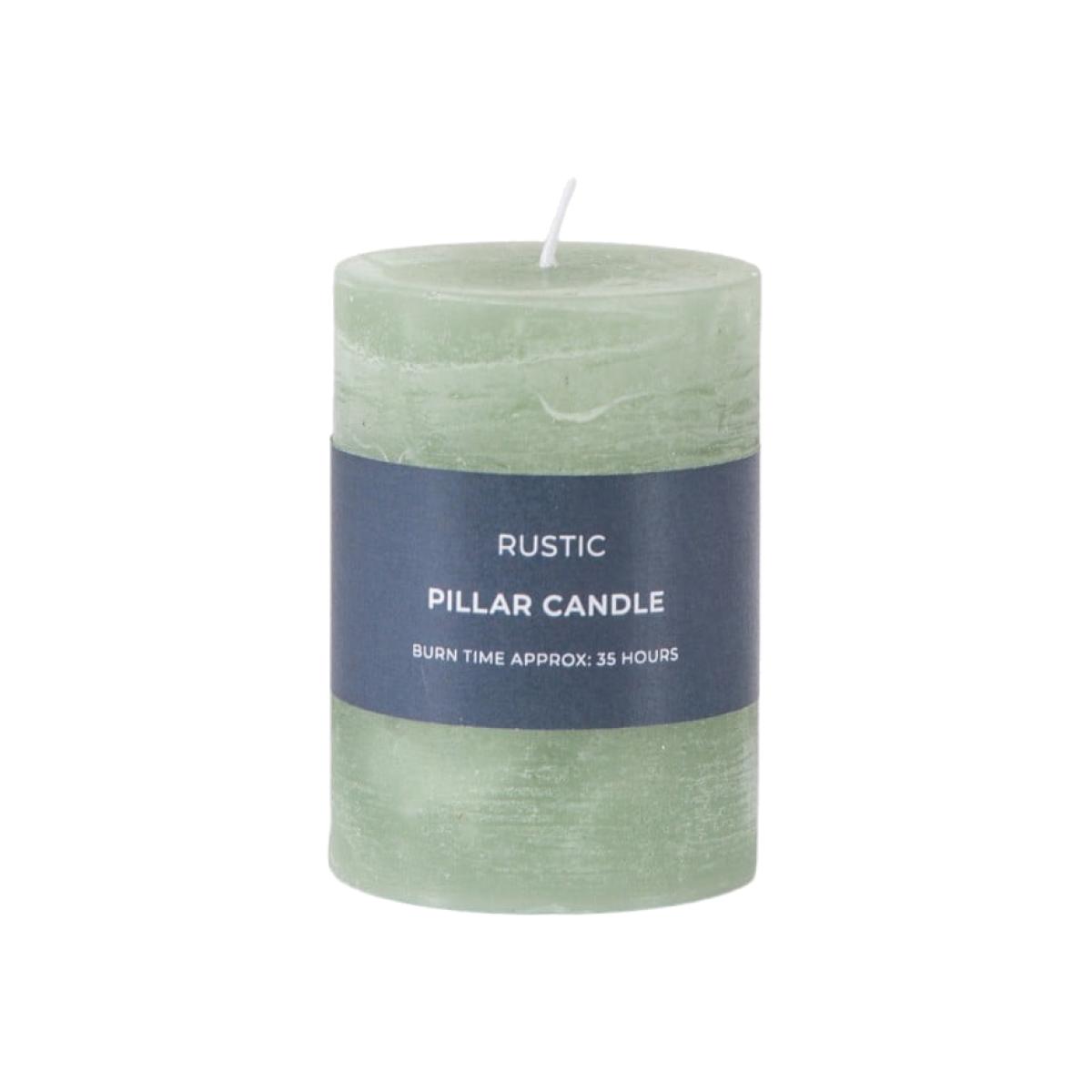 Sage Green rustic finish pillar candles with 35 hour burn time per candle.. Add warmth to your room by adding our stunning rustic finish pillar candles in fresh, modern sage green. Ideal for adding drama to fireplaces in darker evenings or on diniging tables as a enticing display.