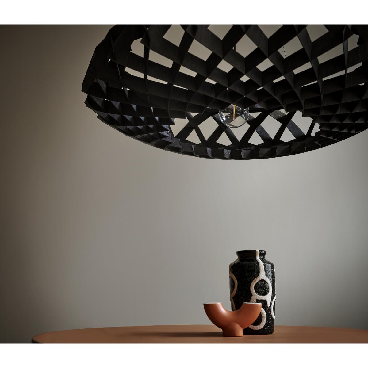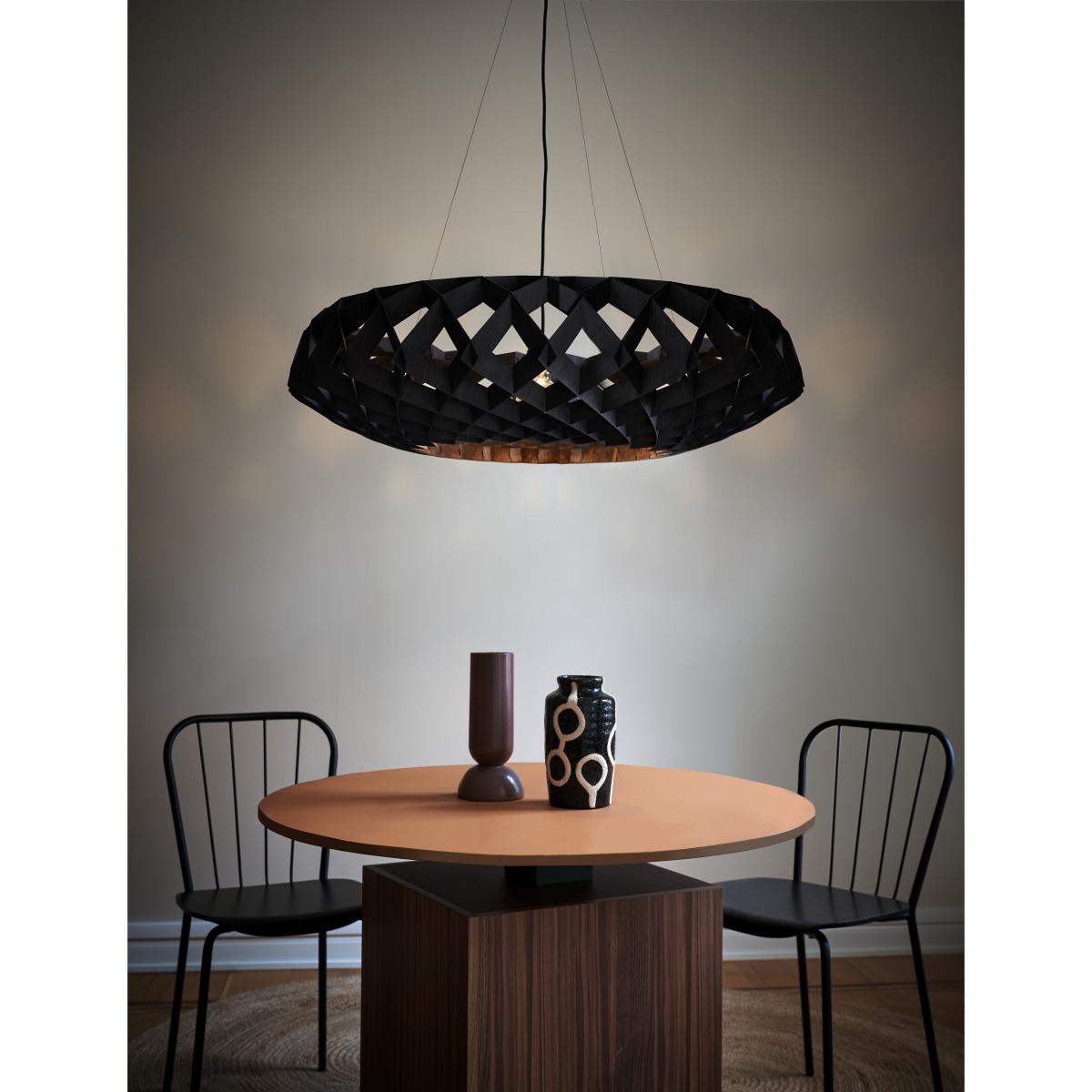 I love this centrepiece pendant for its bold yet minimalist feel; the black finish and simple geometry make it a versatile choice. It works particularly well in contemporary or industrial-style interiors, adding a striking statement without overwhelming the space. When styling, consider pairing it with neutral colour schemes or contrasting textures like raw woods or metals to enhance its modern edge. Practical tips include hanging it at a height that provides sufficient task lighting - usually around 75-85cm above a dining table or kitchen island - and balancing it with subtle accessories or softer lighting around the room for a cohesive look. This pendant is perfect for those who want a focal point that combines sleek design with functional elegance.