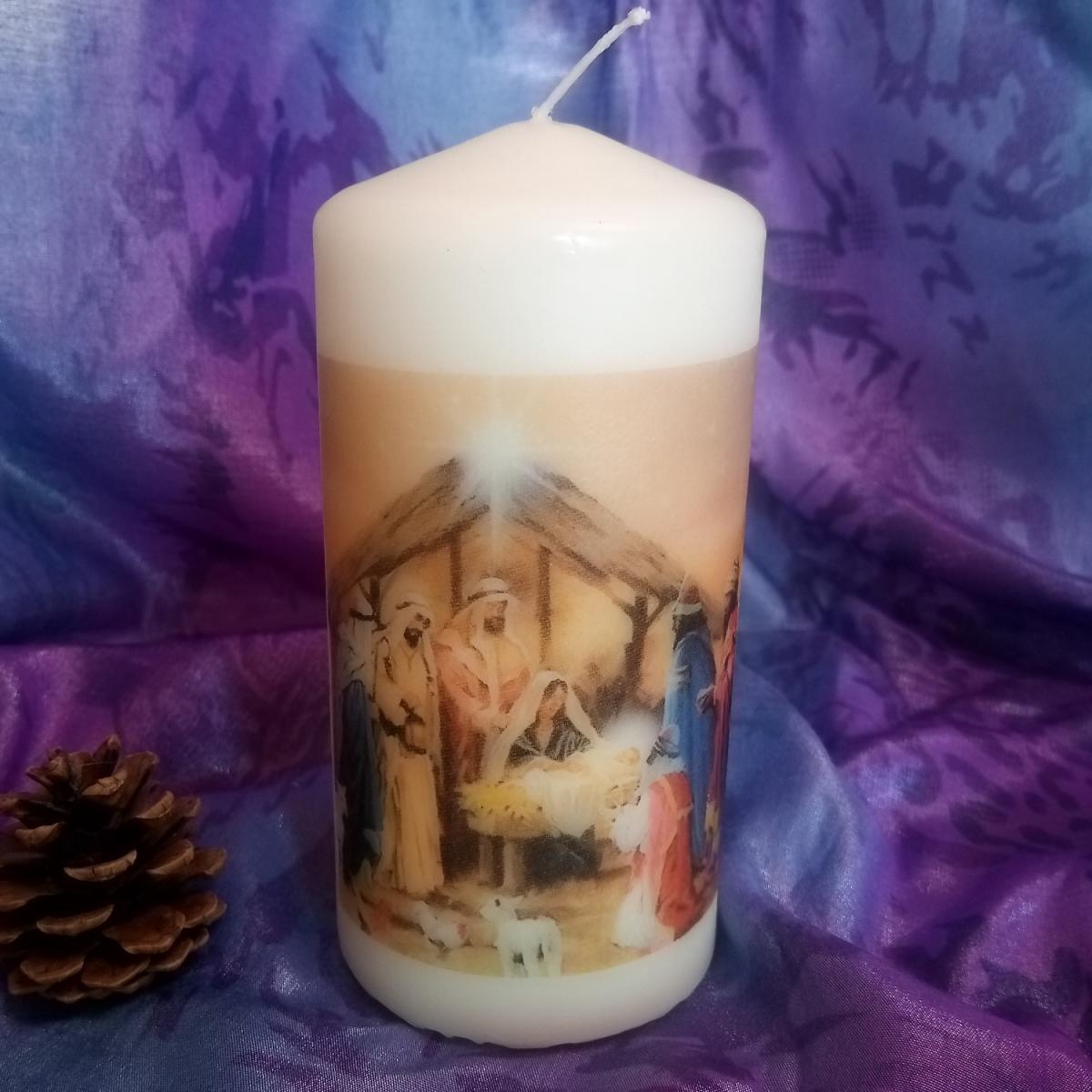 Pillar Candle Nativity - White / 1