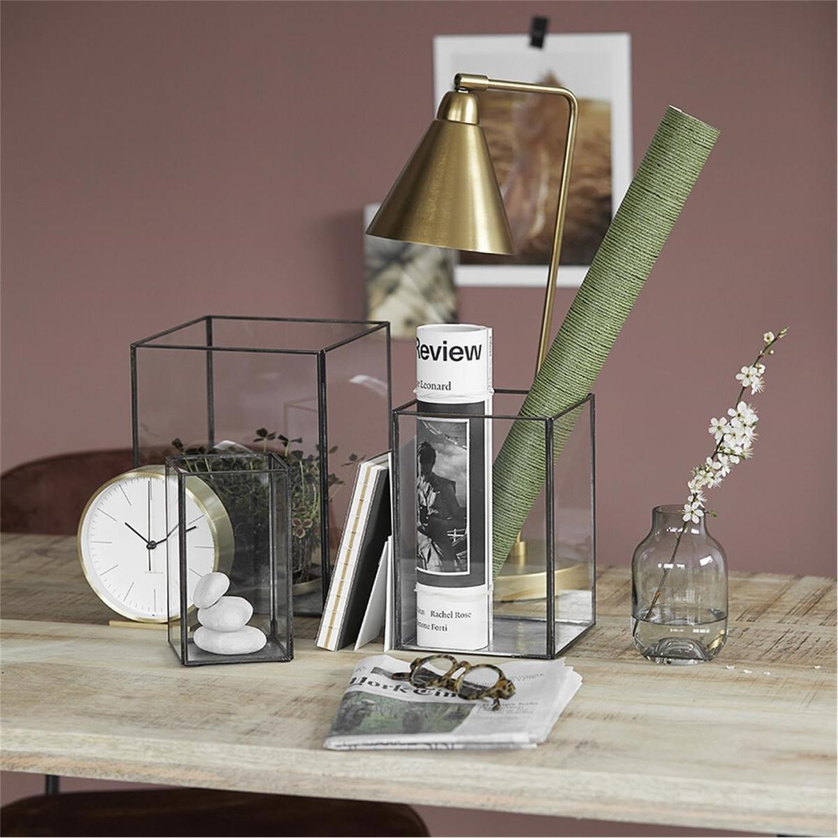 Add an atmospheric glow to dark evenings with this set of Pillar Lanterns from House Doctor. With three lanterns in three different sizes, you can create a beautiful display. Made from iron and glass, the design boasts a black antique finish that adds a raw and industrial touch.