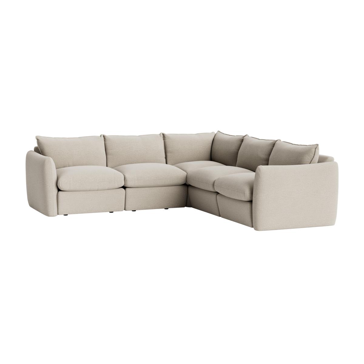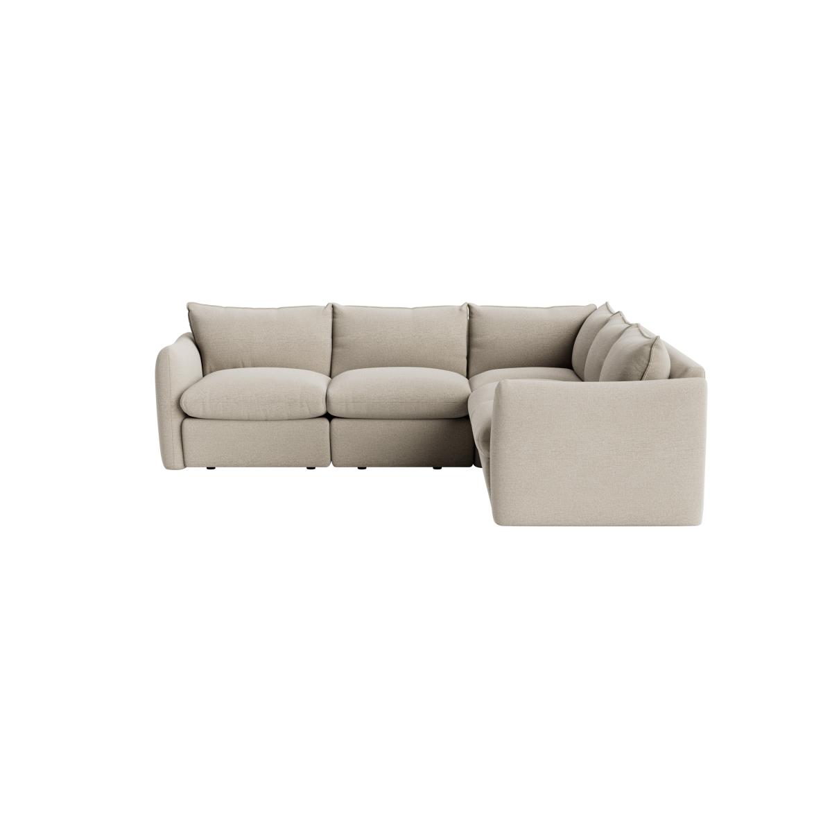I love this one for its practicality and versatility; the modular aspect means it can be customised to fit different room layouts, making it ideal for both open-plan living spaces and cosy corners. The soft, neutral tone works well with a variety of colour schemes, from monochromatic minimalism to layered textures and bold accents. Styling tips include adding contrasting cushions for colour or texture, and pairing it with a sleek coffee table to anchor the space. Its corner design is perfect for creating a comfortable, social zone without sacrificing style, especially when combined with layered lighting and a rug to define the seating area.