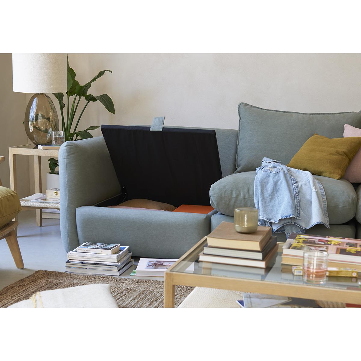 A space-saving squish machine, this pillow-inspired sofa comes with secret storage under the seats.