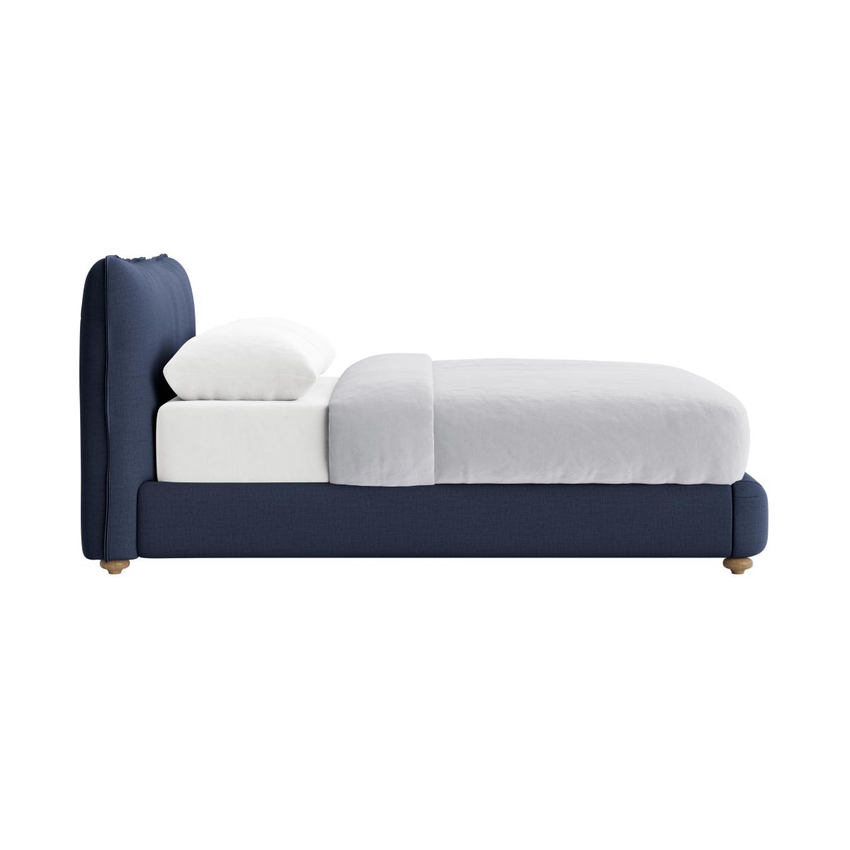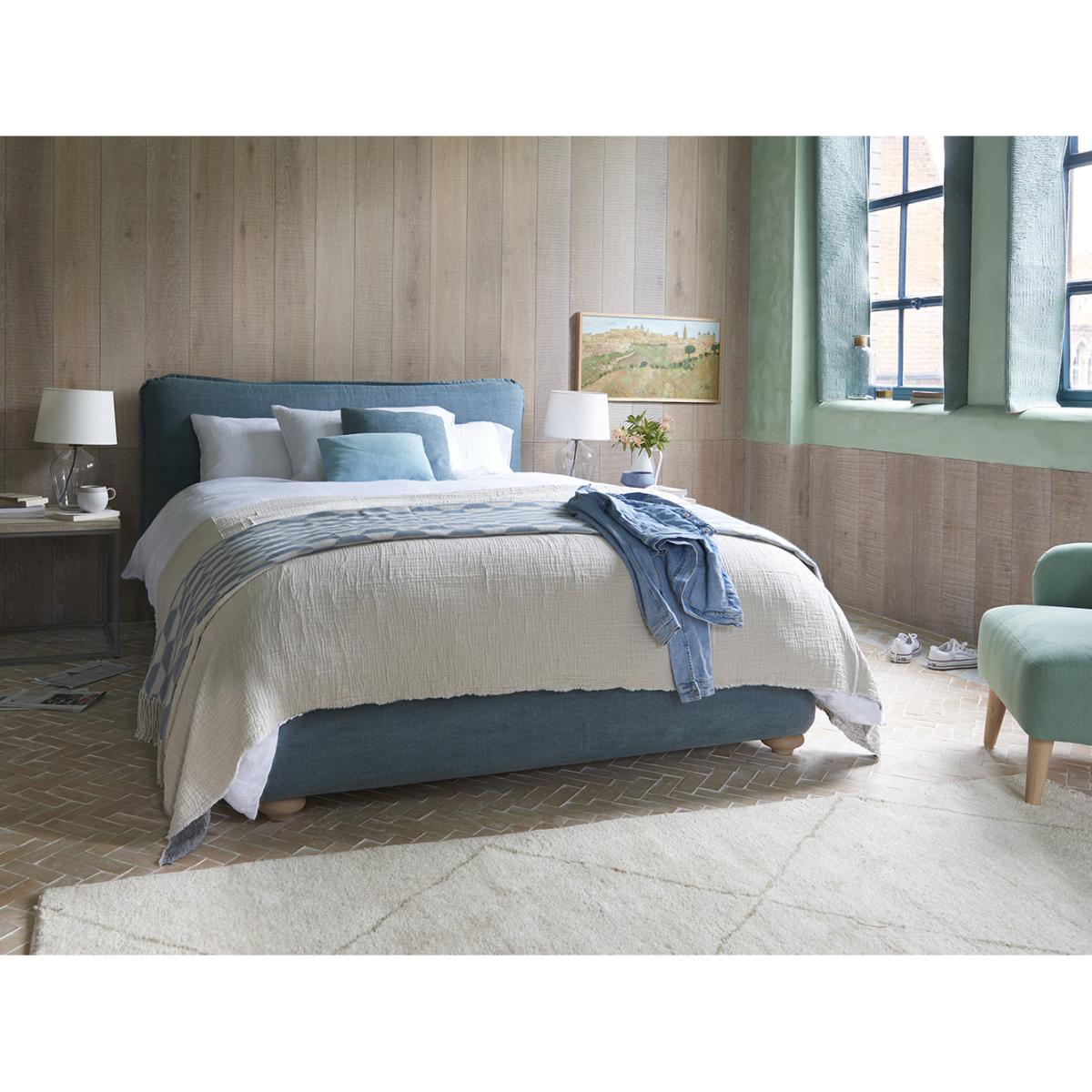 I love the pillow talker bed for its streamlined silhouette and versatile design, making it a great centrepiece in both contemporary and classic interiors. Its navy upholstery adds a touch of sophistication, while the simple yet plush form invites relaxation. Practical styling tips include pairing it with crisp white linens and layered textures like throws and cushions for a cosy look. It works well in neutral schemes or layered with bold colours and patterns for visual interest. As a stylist, I’d recommend keeping surrounding decor minimal to let the bed stand out, or pairing it with vintage bedside tables to add character and warmth.