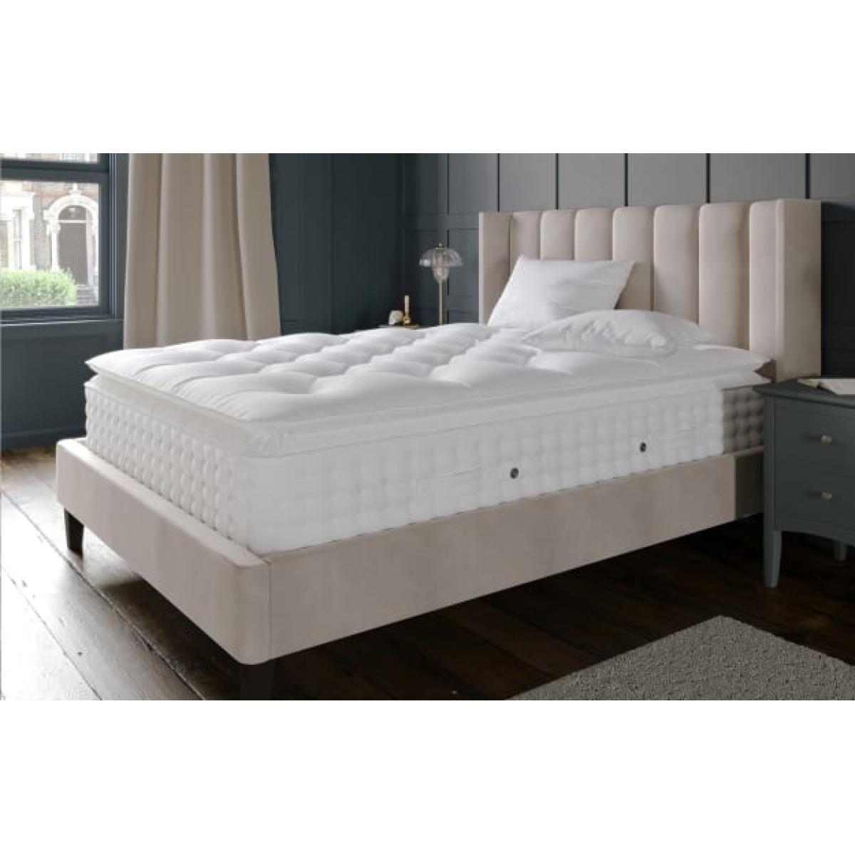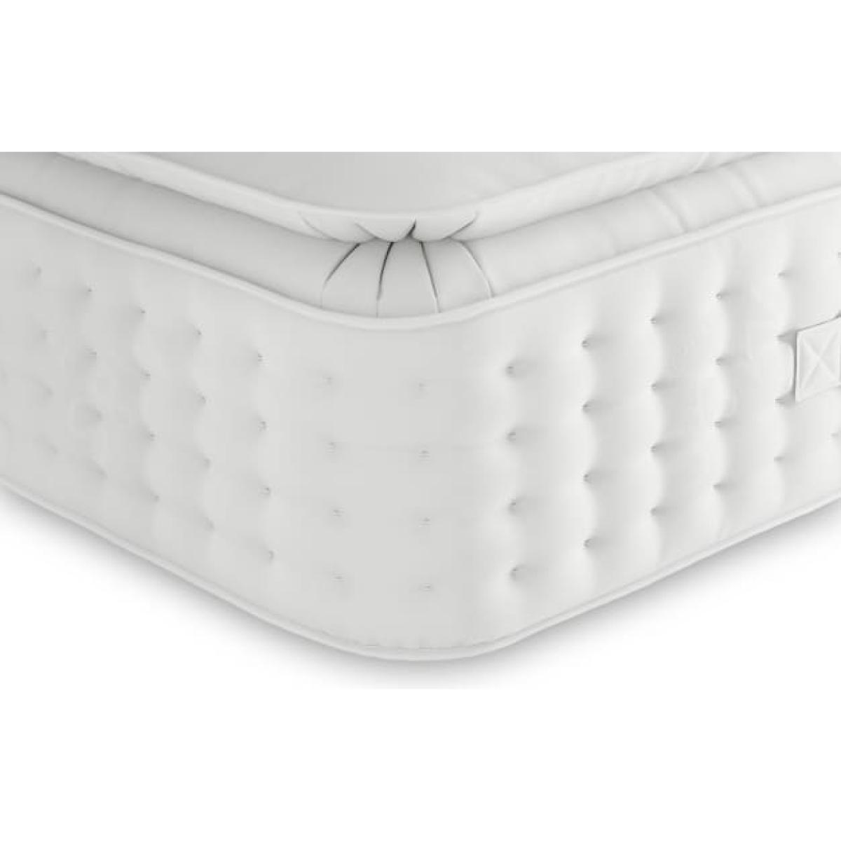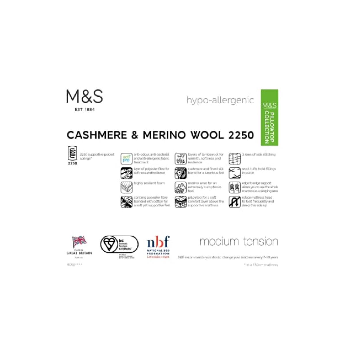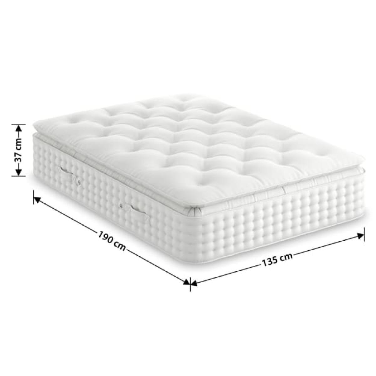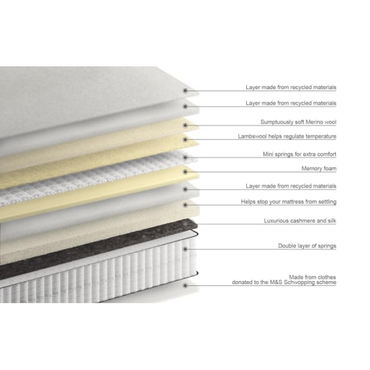 Settle in for a dreamy night's sleep with this premium pocket spring mattress. Every spring is woven into individual pockets that mould independently to the contours of your body. This helps relieve pressure on your back and joints, and is ideal for couples as it helps isolate your partner's movements so that they don't affect your sleep. This mattress offers medium support across its whole width and length, thanks to the edge-to-edge design of the springs. The luxurious cashmere and merino wool filling provides a soft, cushioned feel and is naturally hypoallergenic - great news for allergy sufferers. Eight air vents help keep this mattress fresher for longer, and increase breathability for a cooler night's sleep. The four rows of side stitches add durability, while the four handles make rotating your mattress a breeze. We've also added a sewn-on pillowtop layer to provide a plush and cosy 'sink-in' feeling. This mattress has been made in the UK and you'll sleep soundly knowing that it comes with a 10-year guarantee.