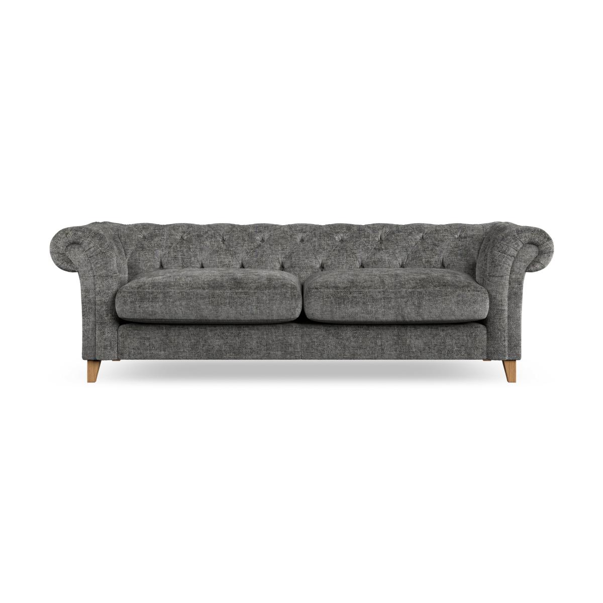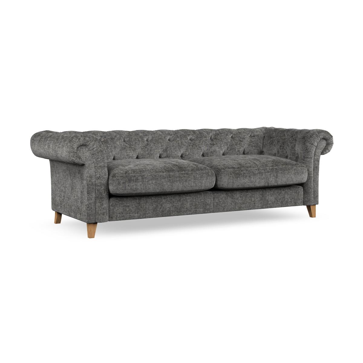 * Chesterfield style* Scroll arms* Serpentine seat springs* Choose your support, fabric and leg colour This sofa's authentic Chesterfield design features generously scrolled arms and deep buttoning, bringing a timeless elegance to your home. Built for durability, the sofa is equipped with serpentine seat springs for long-lasting comfort and a Superloop sprung back for excellent support. You have the option of a supportive, low-maintenance foam seat or a more relaxed 'Qualofill Blue' fibre seat, made from 100% recycled polyester, including post-consumer and ocean plastics. The self-sewn seat cushions offer a contemporary twist, while the hardwood legs, available in two finishes, provide a bespoke touch and are easy to fit. Made to order, the Pimlico 4 Seater Sofa allows for complete customisation, letting you choose from a variety of fabrics, colours, foot types, and fillings to create a luxurious and personalised addition to your home.