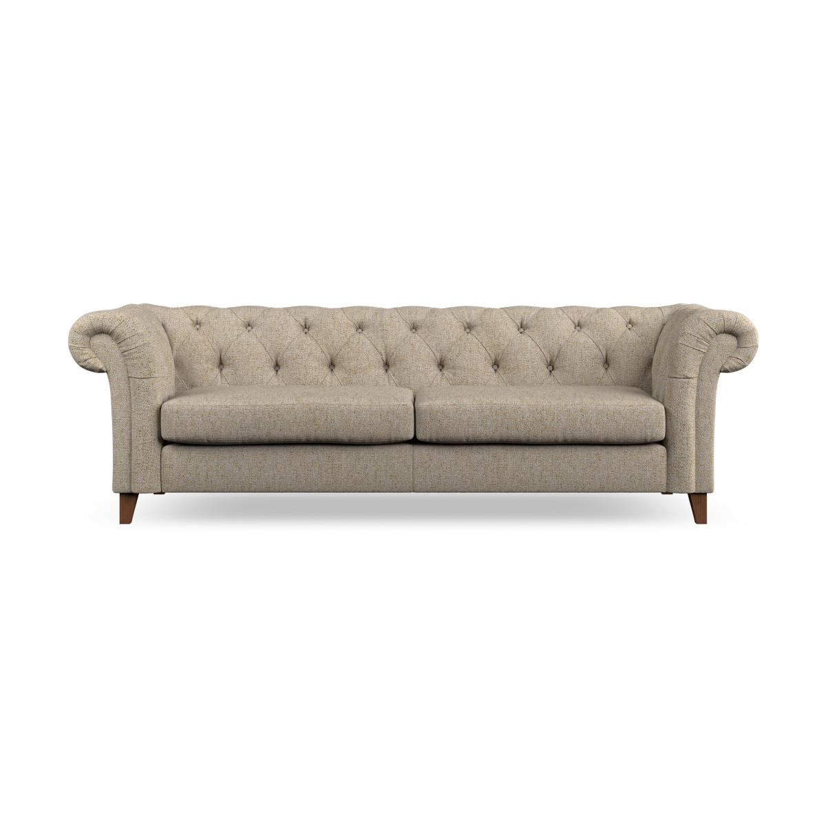 * Chesterfield style* Scroll arms* Serpentine seat springs* Choose your support, fabric and leg colour This sofa's authentic Chesterfield design features generously scrolled arms and deep buttoning, bringing a timeless elegance to your home. Built for durability, the sofa is equipped with serpentine seat springs for long-lasting comfort and a Superloop sprung back for excellent support. You have the option of a supportive, low-maintenance foam seat or a more relaxed 'Qualofill Blue' fibre seat, made from 100% recycled polyester, including post-consumer and ocean plastics. The self-sewn seat cushions offer a contemporary twist, while the hardwood legs, available in two finishes, provide a bespoke touch and are easy to fit. Made to order, the Pimlico 4 Seater Sofa allows for complete customisation, letting you choose from a variety of fabrics, colours, foot types, and fillings to create a luxurious and personalised addition to your home.