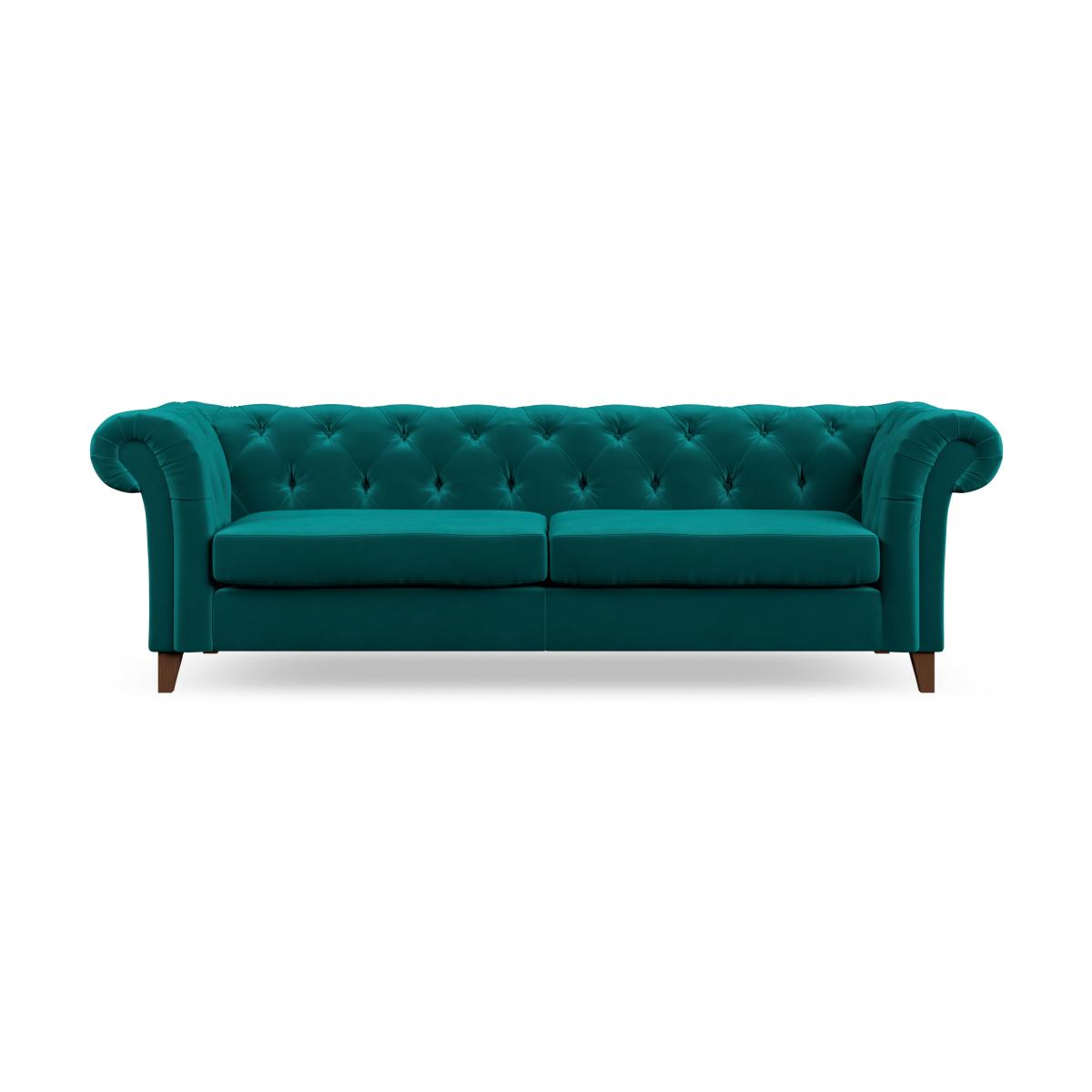 * Chesterfield style* Scroll arms* Serpentine seat springs* Choose your support, fabric and leg colour This sofa's authentic Chesterfield design features generously scrolled arms and deep buttoning, bringing a timeless elegance to your home. Built for durability, the sofa is equipped with serpentine seat springs for long-lasting comfort and a Superloop sprung back for excellent support. You have the option of a supportive, low-maintenance foam seat or a more relaxed 'Qualofill Blue' fibre seat, made from 100% recycled polyester, including post-consumer and ocean plastics. The self-sewn seat cushions offer a contemporary twist, while the hardwood legs, available in two finishes, provide a bespoke touch and are easy to fit. Made to order, the Pimlico 4 Seater Sofa allows for complete customisation, letting you choose from a variety of fabrics, colours, foot types, and fillings to create a luxurious and personalised addition to your home.