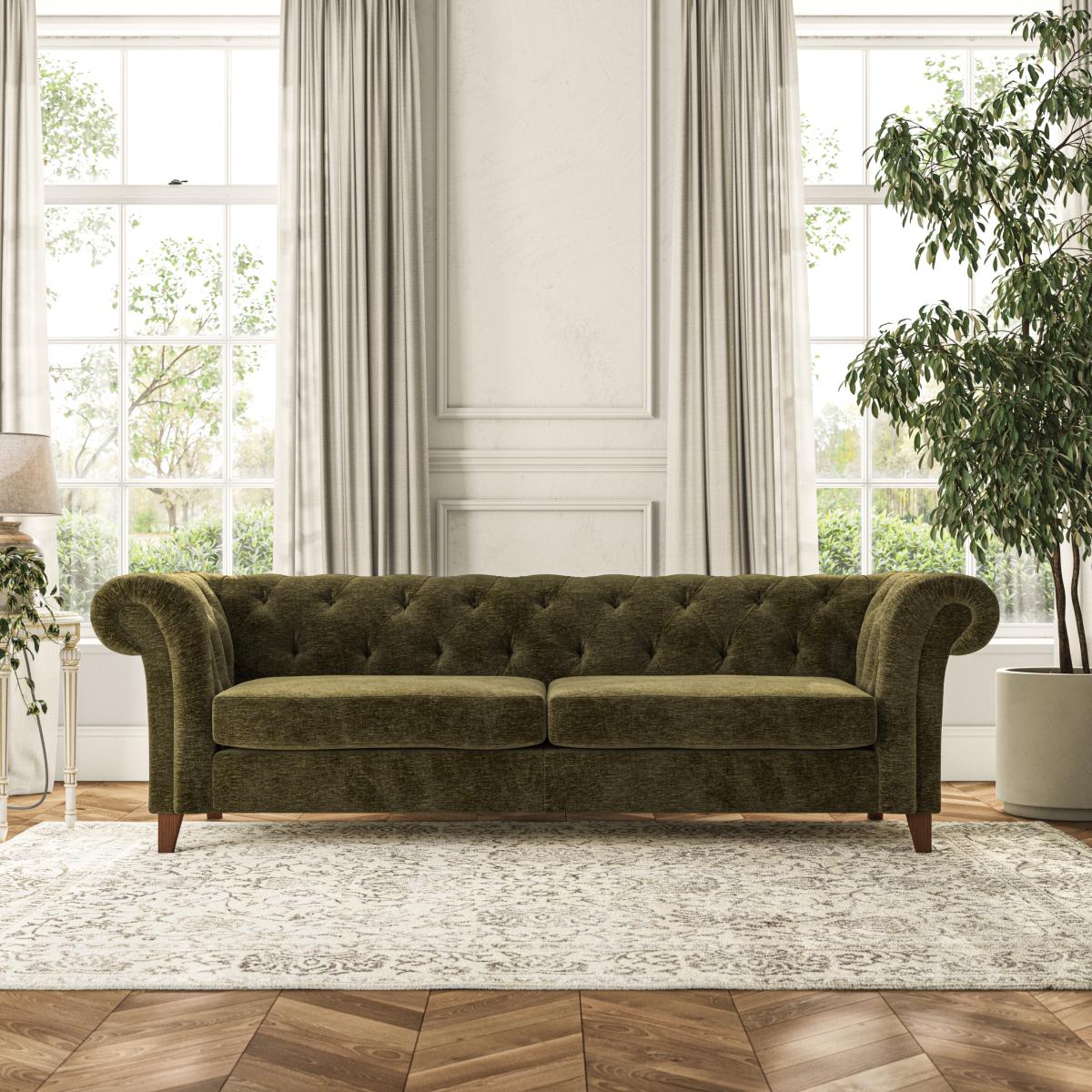 * Chesterfield style* Scroll arms* Serpentine seat springs* Choose your support, fabric and leg colour This sofa's authentic Chesterfield design features generously scrolled arms and deep buttoning, bringing a timeless elegance to your home. Built for durability, the sofa is equipped with serpentine seat springs for long-lasting comfort and a Superloop sprung back for excellent support. You have the option of a supportive, low-maintenance foam seat or a more relaxed 'Qualofill Blue' fibre seat, made from 100% recycled polyester, including post-consumer and ocean plastics. The self-sewn seat cushions offer a contemporary twist, while the hardwood legs, available in two finishes, provide a bespoke touch and are easy to fit. Made to order, the Pimlico 4 Seater Sofa allows for complete customisation, letting you choose from a variety of fabrics, colours, foot types, and fillings to create a luxurious and personalised addition to your home.