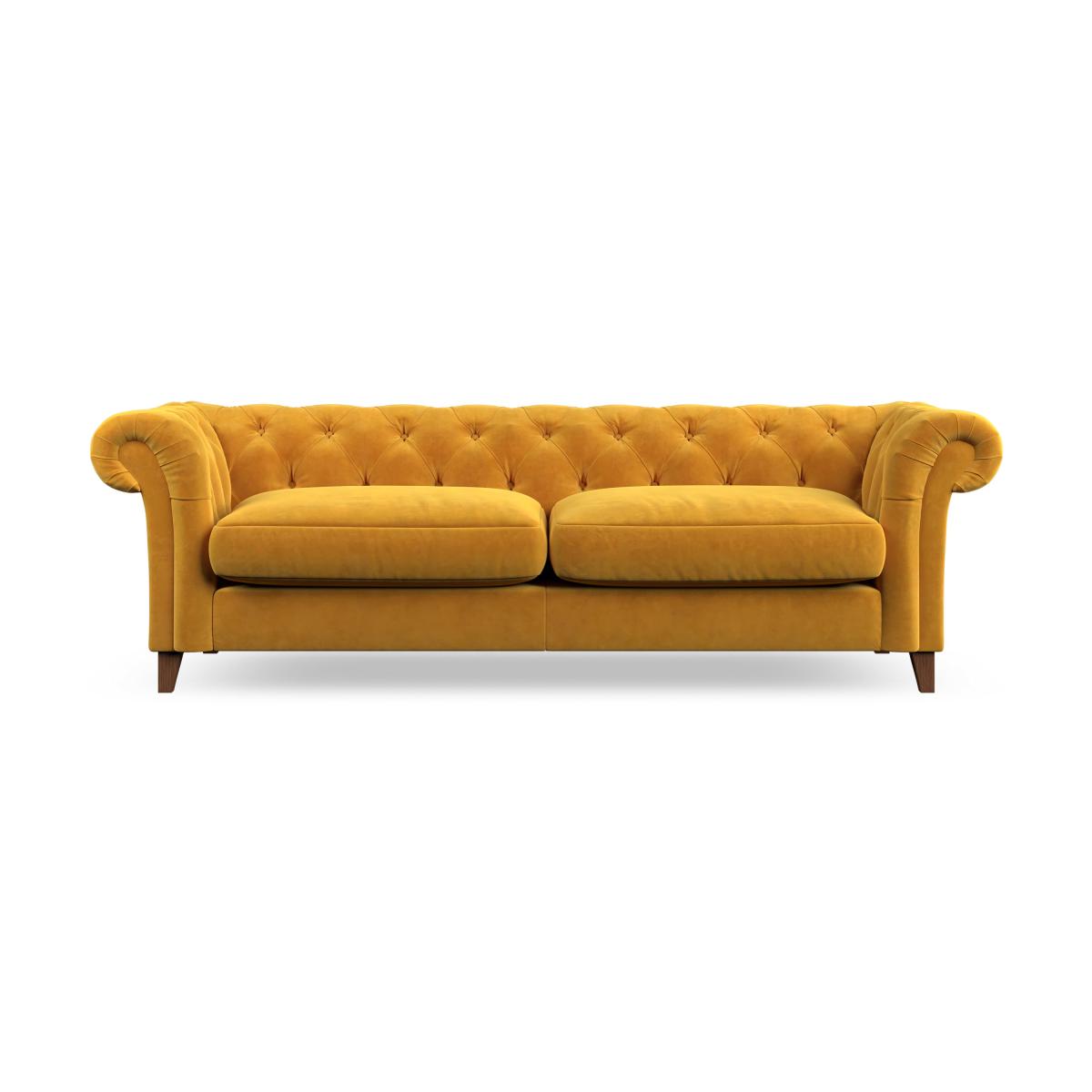 * Chesterfield style* Scroll arms* Serpentine seat springs* Choose your support, fabric and leg colour This sofa's authentic Chesterfield design features generously scrolled arms and deep buttoning, bringing a timeless elegance to your home. Built for durability, the sofa is equipped with serpentine seat springs for long-lasting comfort and a Superloop sprung back for excellent support. You have the option of a supportive, low-maintenance foam seat or a more relaxed 'Qualofill Blue' fibre seat, made from 100% recycled polyester, including post-consumer and ocean plastics. The self-sewn seat cushions offer a contemporary twist, while the hardwood legs, available in two finishes, provide a bespoke touch and are easy to fit. Made to order, the Pimlico 4 Seater Sofa allows for complete customisation, letting you choose from a variety of fabrics, colours, foot types, and fillings to create a luxurious and personalised addition to your home.