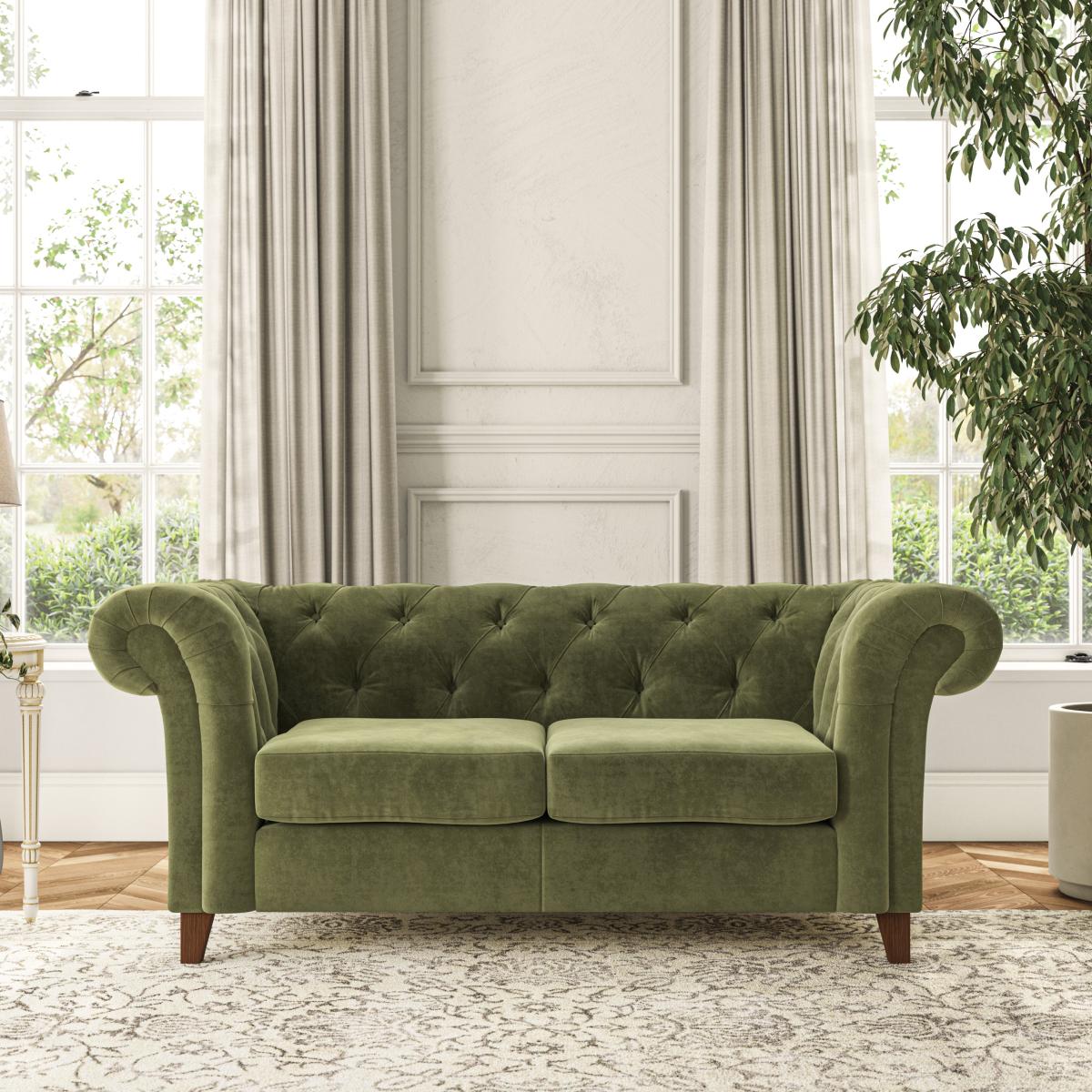 * Chesterfield style* Scroll arms* Serpentine seat springs* Choose your support, fabric and leg colour This sofa's traditional Chesterfield design, complete with generously scrolled arms and deep buttoning, brings an air of timeless elegance to your home. Built with longevity in mind, the sofa features serpentine seat springs for lasting comfort and a Superloop sprung back for excellent support. You can choose between a supportive foam seat for low-maintenance care or a more relaxed 'Qualofill Blue' fibre seat, crafted from 100% recycled polyester, including post-consumer and ocean plastics. The self-sewn seat cushions offer a more contemporary feel, while the hardwood legs, available in two finishes, provide a customisable and stylish touch, and are easy to fit. Made to order, the Pimlico Large 2 Seater Sofa can be tailored to your exact preferences, offering a wide selection of colours, fabrics, foot types, and fillings for a truly personalised and comfortable piece.