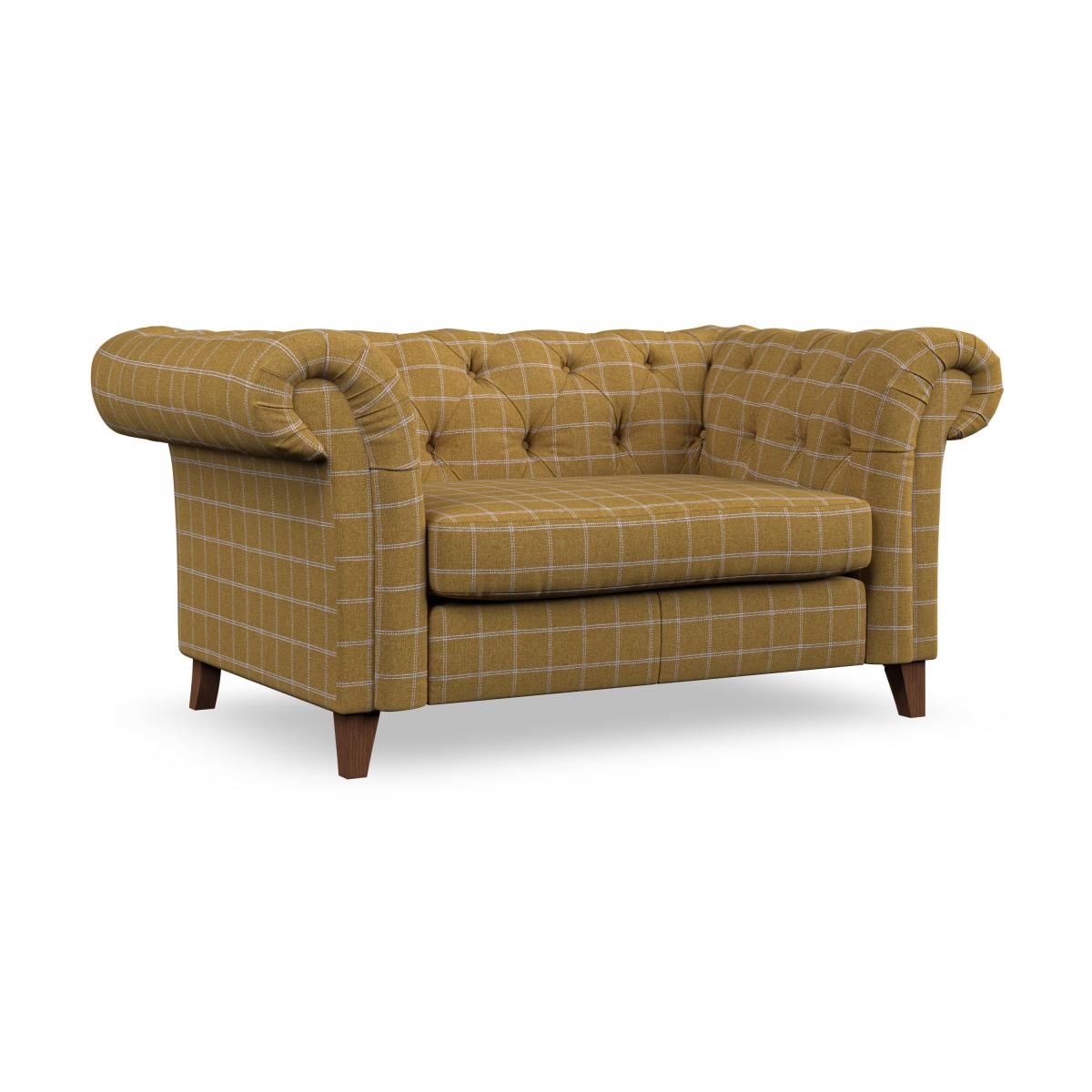 * Chesterfield style* Scroll arms* Serpentine seat springs* Choose your support, fabric and leg colour Featuring an authentic Chesterfield design with generously scrolled arms and striking deep buttoning, this chair adds a touch of sophistication to your living space. Built for both style and durability, it includes serpentine seat springs for lasting comfort and a Superloop sprung back for superior support. You can choose between a supportive, low-maintenance foam seat or a more relaxed 'Qualofill Blue' fibre seat, which is made from 100% recycled polyester, including post-consumer and ocean plastics. The self-sewn seat cushions lend a contemporary edge to the traditional design, while the hardwood legs, available in two finishes, offer a customisable touch and are easy to fit. Made to order, the Pimlico Snuggle Chair can be tailored to your preferences with a wide selection of colours, fabrics, foot types, and fillings, allowing you to create a truly personalised piece that enhances the comfort and style of your home.