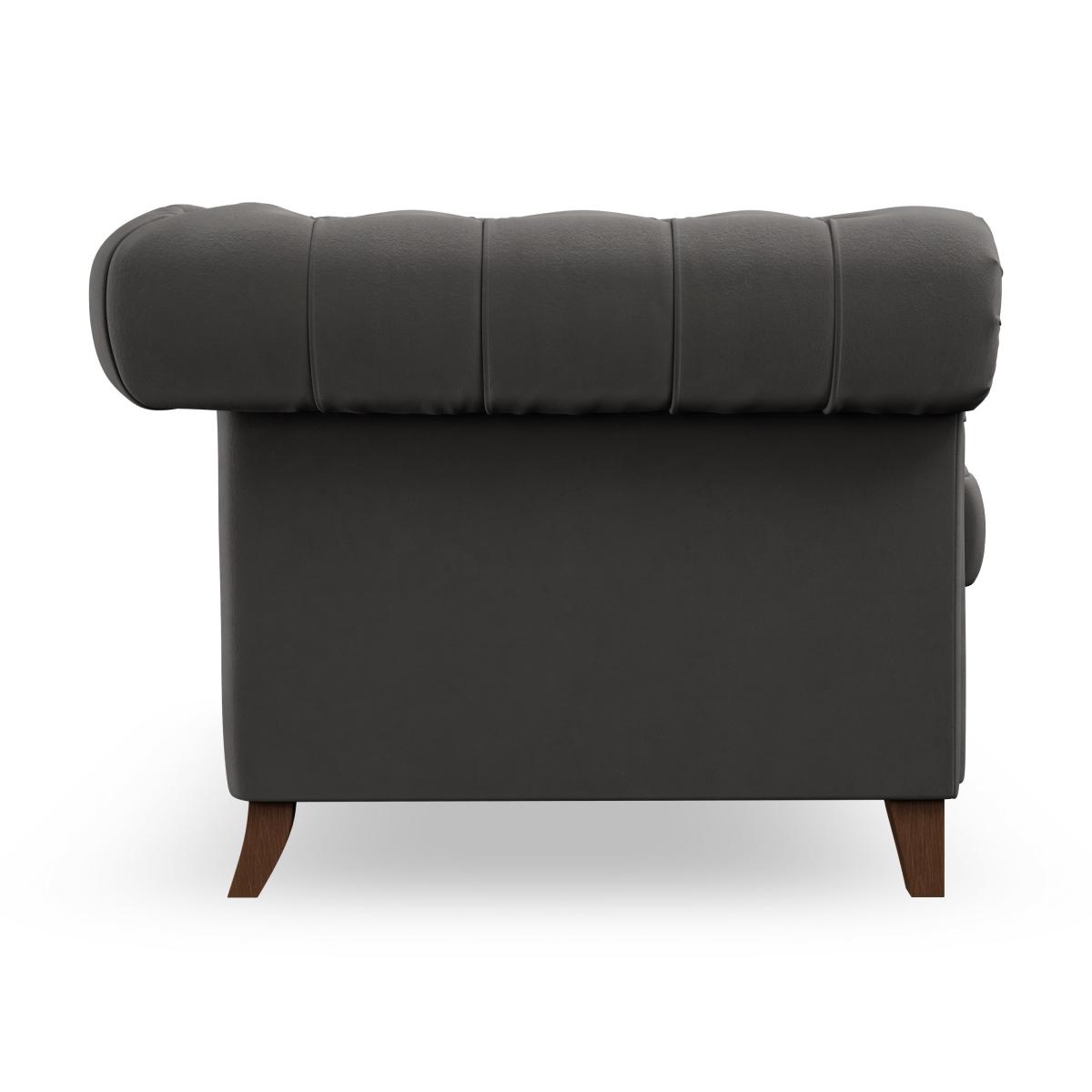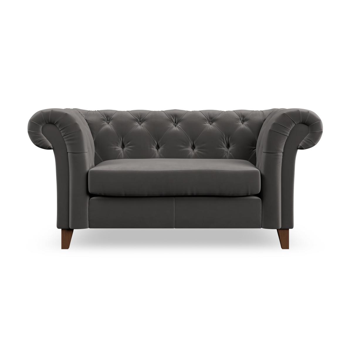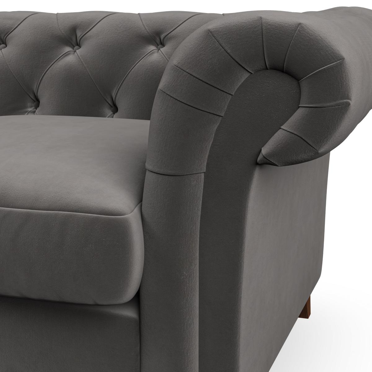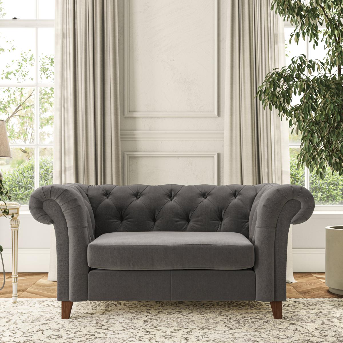 * Chesterfield style* Scroll arms* Serpentine seat springs* Choose your support, fabric and leg colour Featuring an authentic Chesterfield design with generously scrolled arms and striking deep buttoning, this chair adds a touch of sophistication to your living space. Built for both style and durability, it includes serpentine seat springs for lasting comfort and a Superloop sprung back for superior support. You can choose between a supportive, low-maintenance foam seat or a more relaxed 'Qualofill Blue' fibre seat, which is made from 100% recycled polyester, including post-consumer and ocean plastics. The self-sewn seat cushions lend a contemporary edge to the traditional design, while the hardwood legs, available in two finishes, offer a customisable touch and are easy to fit. Made to order, the Pimlico Snuggle Chair can be tailored to your preferences with a wide selection of colours, fabrics, foot types, and fillings, allowing you to create a truly personalised piece that enhances the comfort and style of your home.