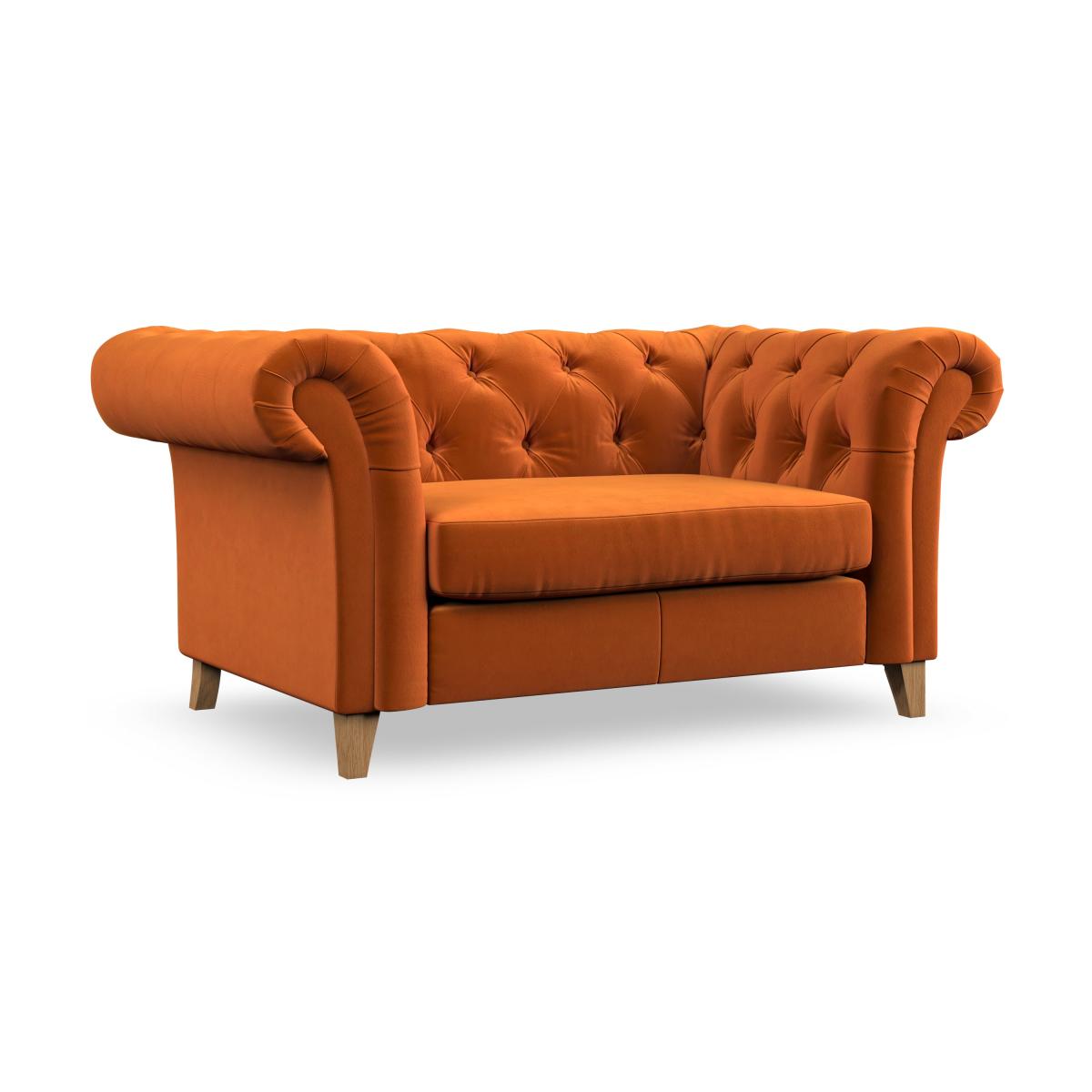 * Chesterfield style* Scroll arms* Serpentine seat springs* Choose your support, fabric and leg colour Featuring an authentic Chesterfield design with generously scrolled arms and striking deep buttoning, this chair adds a touch of sophistication to your living space. Built for both style and durability, it includes serpentine seat springs for lasting comfort and a Superloop sprung back for superior support. You can choose between a supportive, low-maintenance foam seat or a more relaxed 'Qualofill Blue' fibre seat, which is made from 100% recycled polyester, including post-consumer and ocean plastics. The self-sewn seat cushions lend a contemporary edge to the traditional design, while the hardwood legs, available in two finishes, offer a customisable touch and are easy to fit. Made to order, the Pimlico Snuggle Chair can be tailored to your preferences with a wide selection of colours, fabrics, foot types, and fillings, allowing you to create a truly personalised piece that enhances the comfort and style of your home.