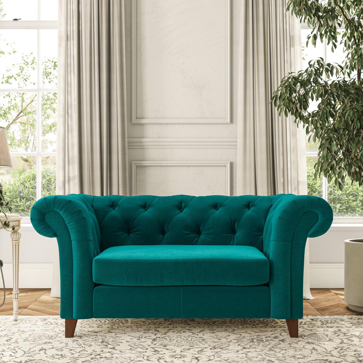 * Chesterfield style* Scroll arms* Serpentine seat springs* Choose your support, fabric and leg colour Featuring an authentic Chesterfield design with generously scrolled arms and striking deep buttoning, this chair adds a touch of sophistication to your living space. Built for both style and durability, it includes serpentine seat springs for lasting comfort and a Superloop sprung back for superior support. You can choose between a supportive, low-maintenance foam seat or a more relaxed 'Qualofill Blue' fibre seat, which is made from 100% recycled polyester, including post-consumer and ocean plastics. The self-sewn seat cushions lend a contemporary edge to the traditional design, while the hardwood legs, available in two finishes, offer a customisable touch and are easy to fit. Made to order, the Pimlico Snuggle Chair can be tailored to your preferences with a wide selection of colours, fabrics, foot types, and fillings, allowing you to create a truly personalised piece that enhances the comfort and style of your home.