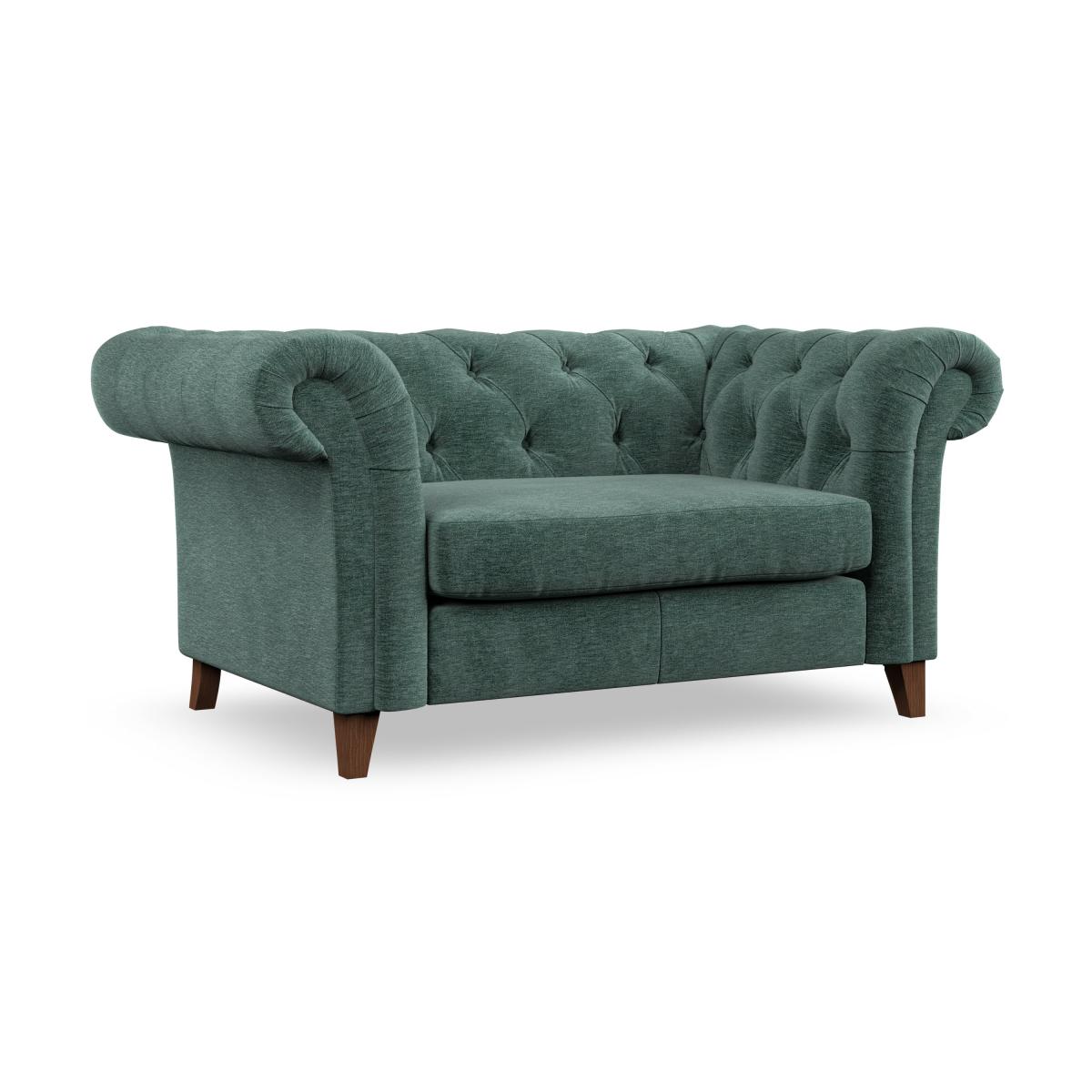 * Chesterfield style* Scroll arms* Serpentine seat springs* Choose your support, fabric and leg colour Featuring an authentic Chesterfield design with generously scrolled arms and striking deep buttoning, this chair adds a touch of sophistication to your living space. Built for both style and durability, it includes serpentine seat springs for lasting comfort and a Superloop sprung back for superior support. You can choose between a supportive, low-maintenance foam seat or a more relaxed 'Qualofill Blue' fibre seat, which is made from 100% recycled polyester, including post-consumer and ocean plastics. The self-sewn seat cushions lend a contemporary edge to the traditional design, while the hardwood legs, available in two finishes, offer a customisable touch and are easy to fit. Made to order, the Pimlico Snuggle Chair can be tailored to your preferences with a wide selection of colours, fabrics, foot types, and fillings, allowing you to create a truly personalised piece that enhances the comfort and style of your home.