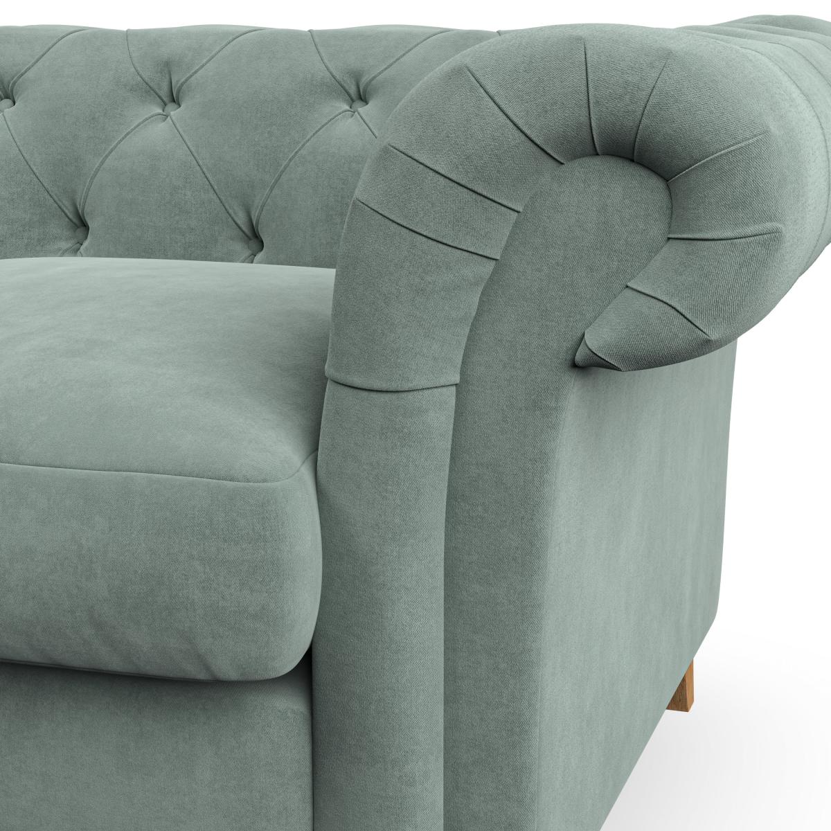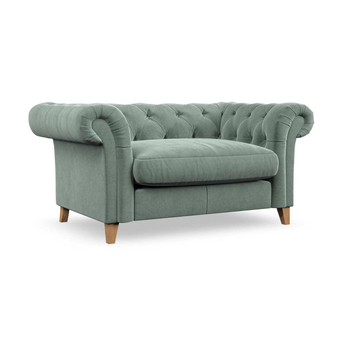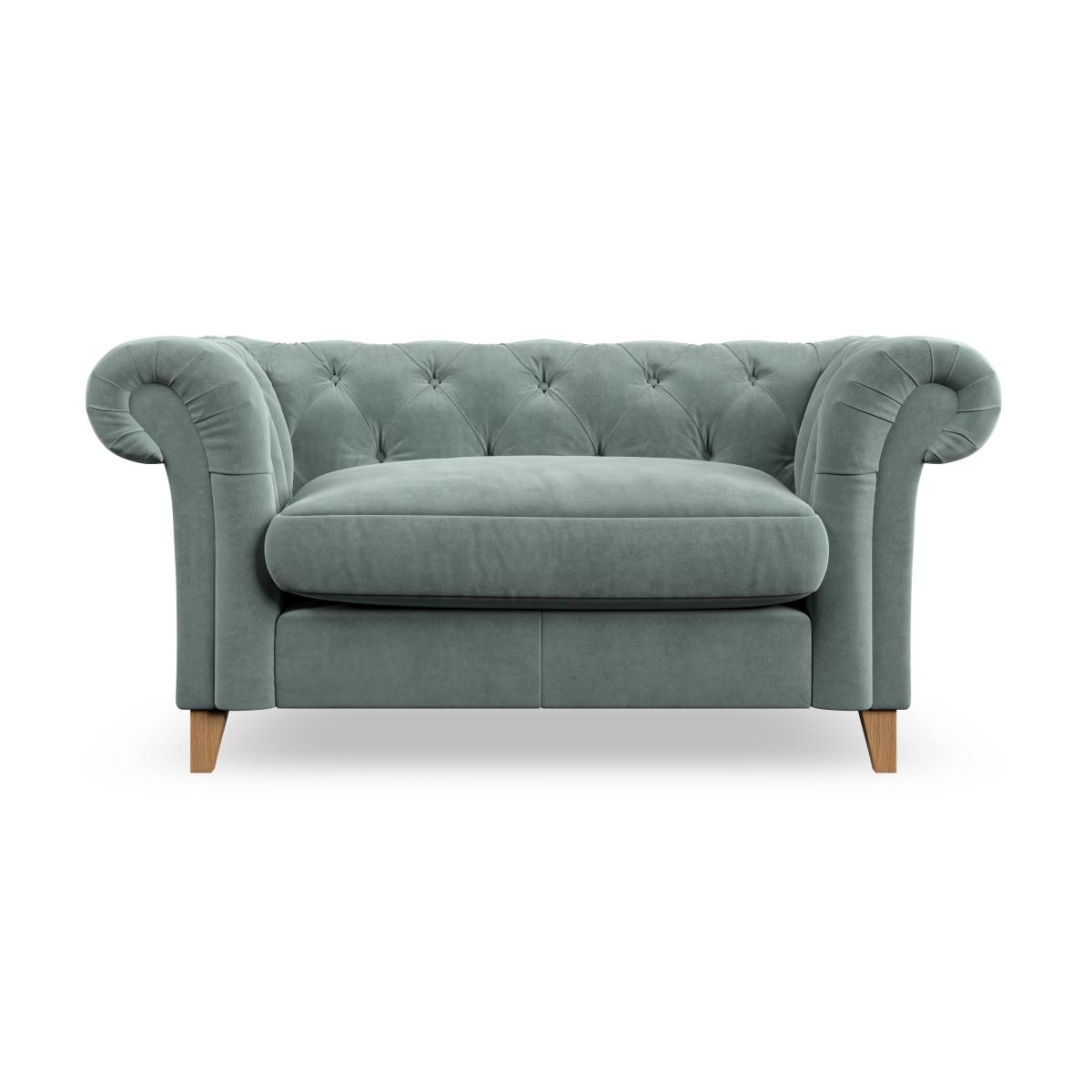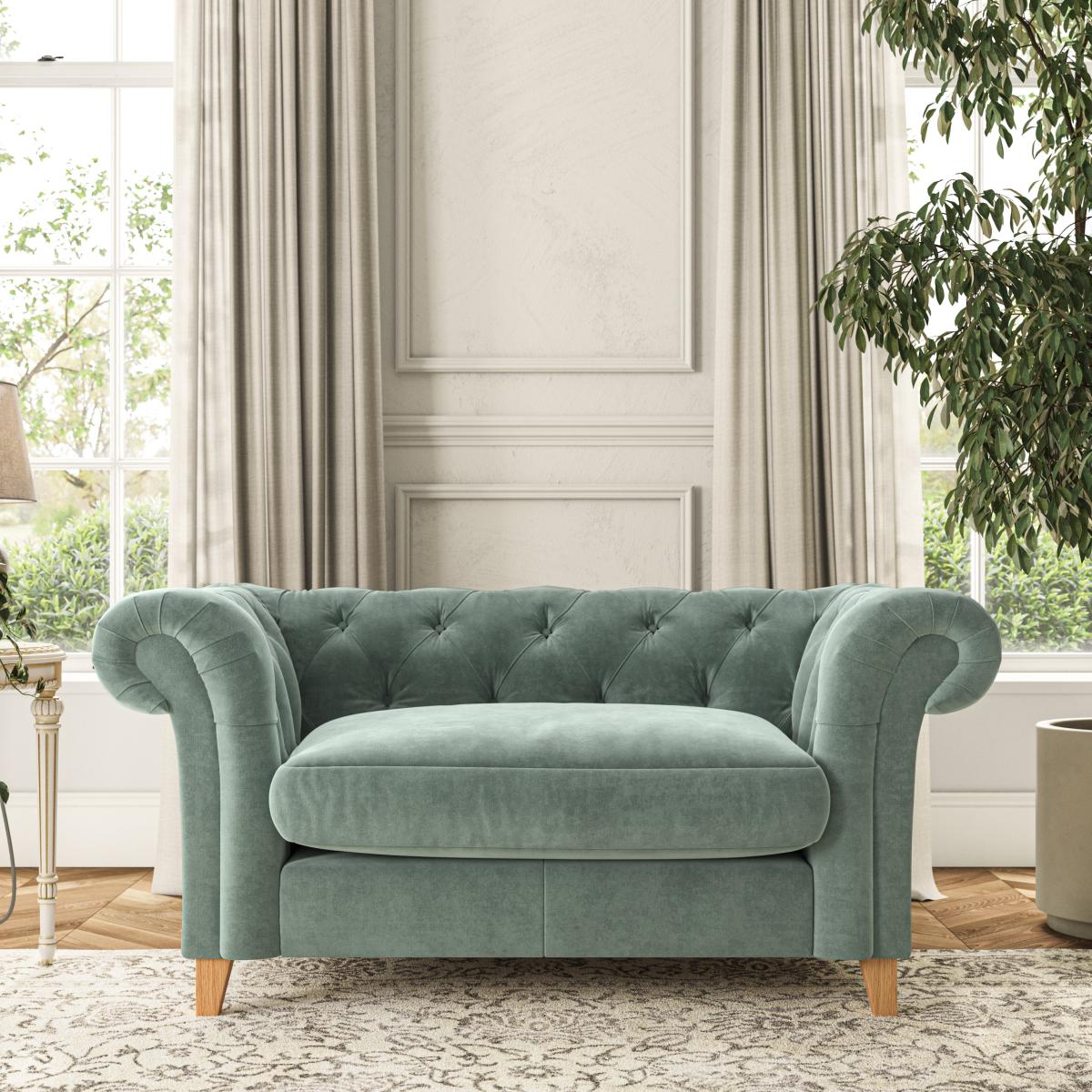 * Chesterfield style* Scroll arms* Serpentine seat springs* Choose your support, fabric and leg colour Featuring an authentic Chesterfield design with generously scrolled arms and striking deep buttoning, this chair adds a touch of sophistication to your living space. Built for both style and durability, it includes serpentine seat springs for lasting comfort and a Superloop sprung back for superior support. You can choose between a supportive, low-maintenance foam seat or a more relaxed 'Qualofill Blue' fibre seat, which is made from 100% recycled polyester, including post-consumer and ocean plastics. The self-sewn seat cushions lend a contemporary edge to the traditional design, while the hardwood legs, available in two finishes, offer a customisable touch and are easy to fit. Made to order, the Pimlico Snuggle Chair can be tailored to your preferences with a wide selection of colours, fabrics, foot types, and fillings, allowing you to create a truly personalised piece that enhances the comfort and style of your home.