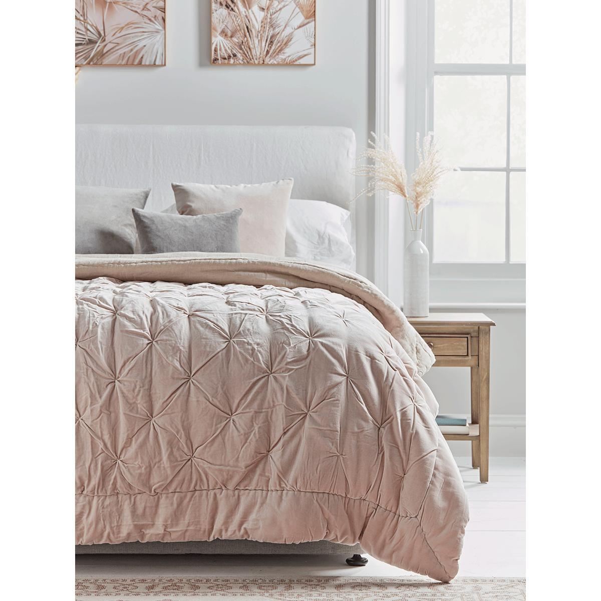 Pin-Tucked Velvet & Linen Kingsize Quilt - Blush