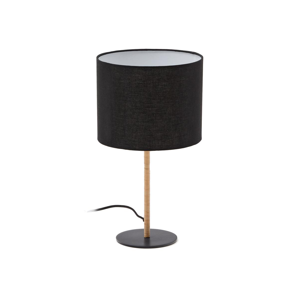 I love this lamp for its industrial-chic vibe, thanks to the mix of metal and rattan that adds texture and warmth. It works well in contemporary, boho, or coastal interiors, providing a balanced blend of natural and modern elements. The black cotton shade gives it a sleek, understated look, making it versatile for both living rooms and bedrooms. For styling, try pairing it with neutral or earthy tones for a cohesive look, and place it on side tables or console units to add ambient lighting without overpowering the space. Its UK plug makes it practical and easy to incorporate into most homes.
