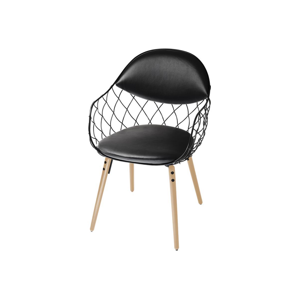 Pina is designed by spanish designer Jaime Hayon. The piece combines the natural element of wood, with a wire capitonné structure. The wire weave pattern which makes up the back of the chair makes the seating unit seem as if it is inflated.