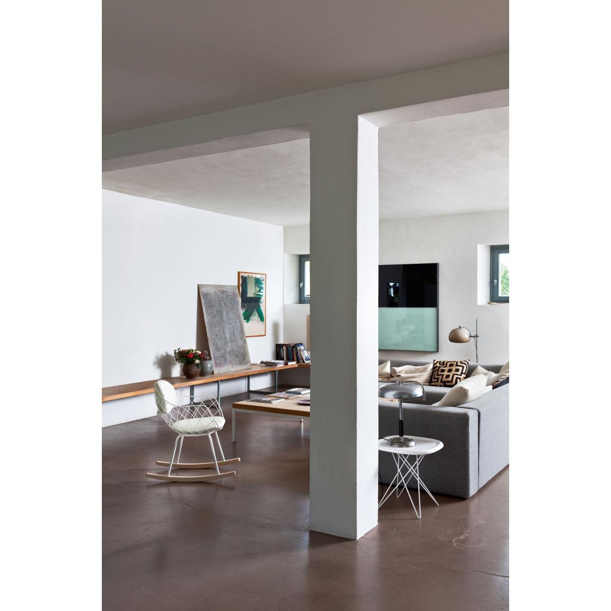 I love this piece because its combination of leather, metal, and wood legs gives it a modern yet timeless appeal. It works particularly well in contemporary or minimal interiors, adding a touch of sophistication without overpowering the space. The rocker design makes it both stylish and practical, perfect for a reading nook or lounge area. For styling tips, consider pairing it with a cosy throw and a small side table for functionality, or placing it near a neutral-toned sofa to introduce contrast. Its clean lines and monochrome palette allow it to blend seamlessly into a variety of colour schemes and décor styles, making it a versatile addition to many homes.