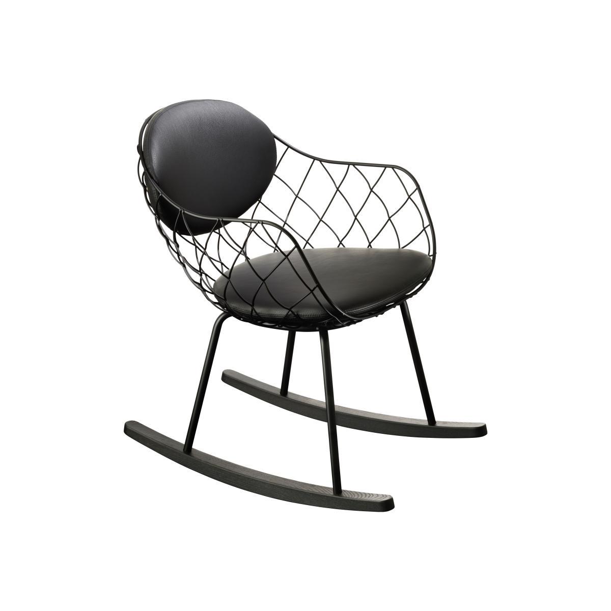 Pina Rocking chair - Leather / Metal & wood legs by Magis Black