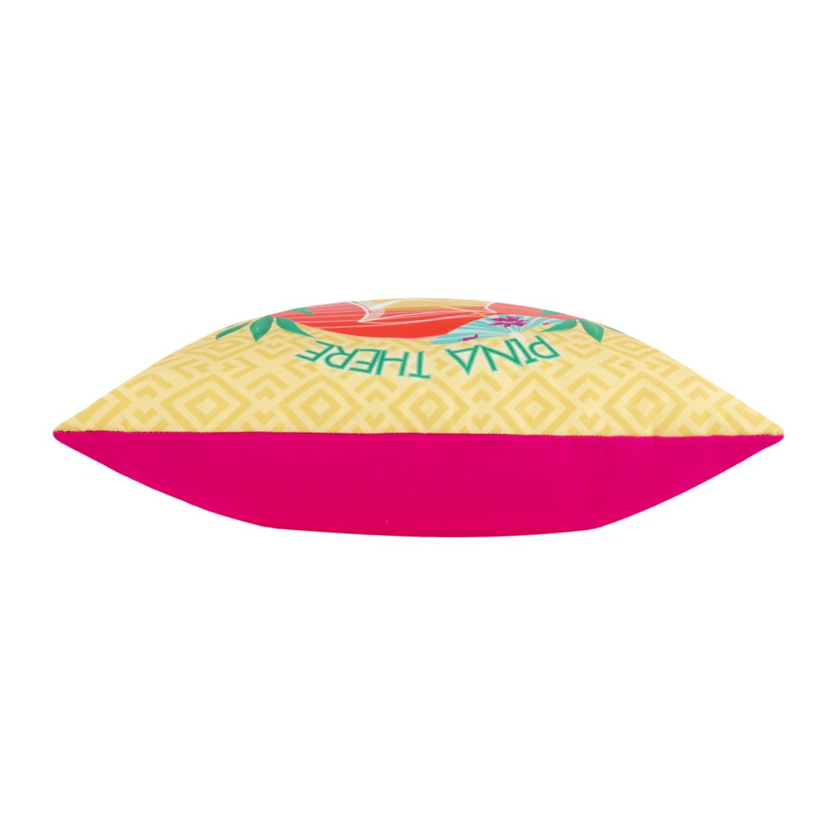 Have fun in the sun with the Pina There outdoor cushion from our thirst-quenching collection. Featuring a unique, abstract design of a pina colada cocktail, surrounded by tropical fruits, and a playful slogan. This cushion is complete with a contrasting pink reverse and will be a playful addition to your outdoor setting this summer season.