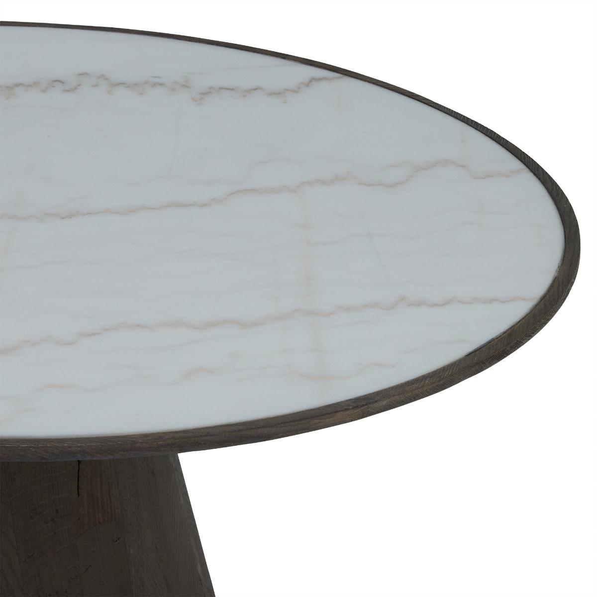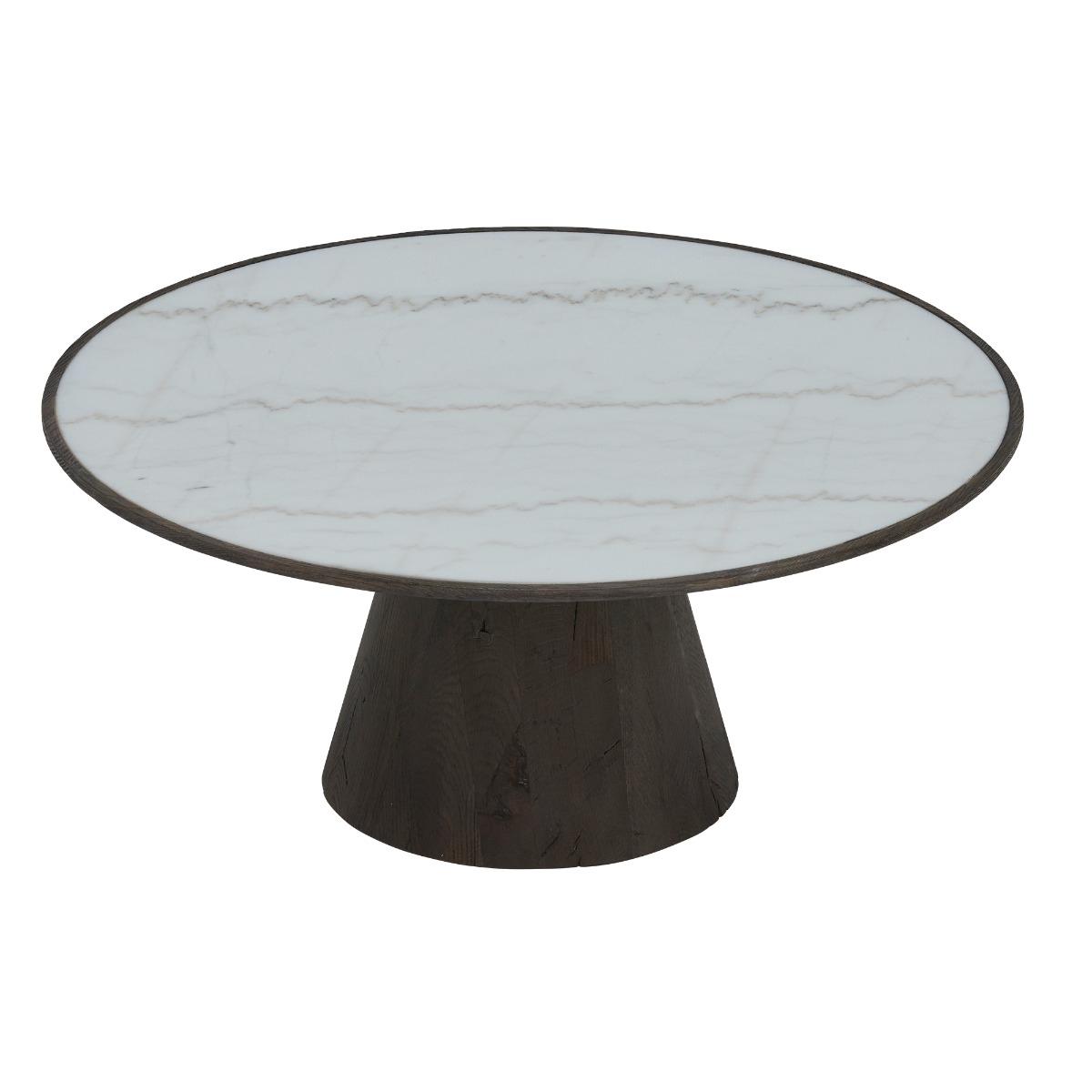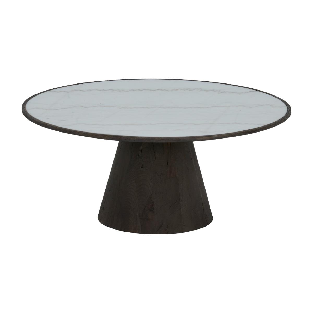 Design. The combination of the natural oak base and contemporary white marble top of the Pindus Large Coffee Table is quite a sight to behold. You can see all the rustic grain marks and colour variations in the oak base and edging around the tabletop, instilling traditional character to the piece. The white marble top adds elegance and refinement, ensuring that the Pindus Large Coffee Table becomes a focal point in your living area.